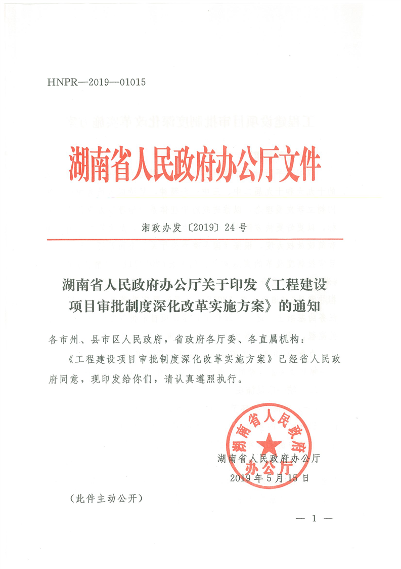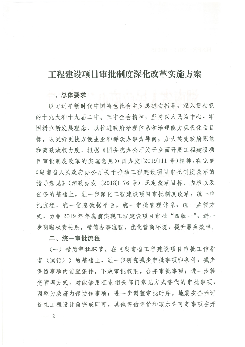 湖南省人民政府辦公廳關於印發《工程建設項目審批製度深化改革實施方案》的通知