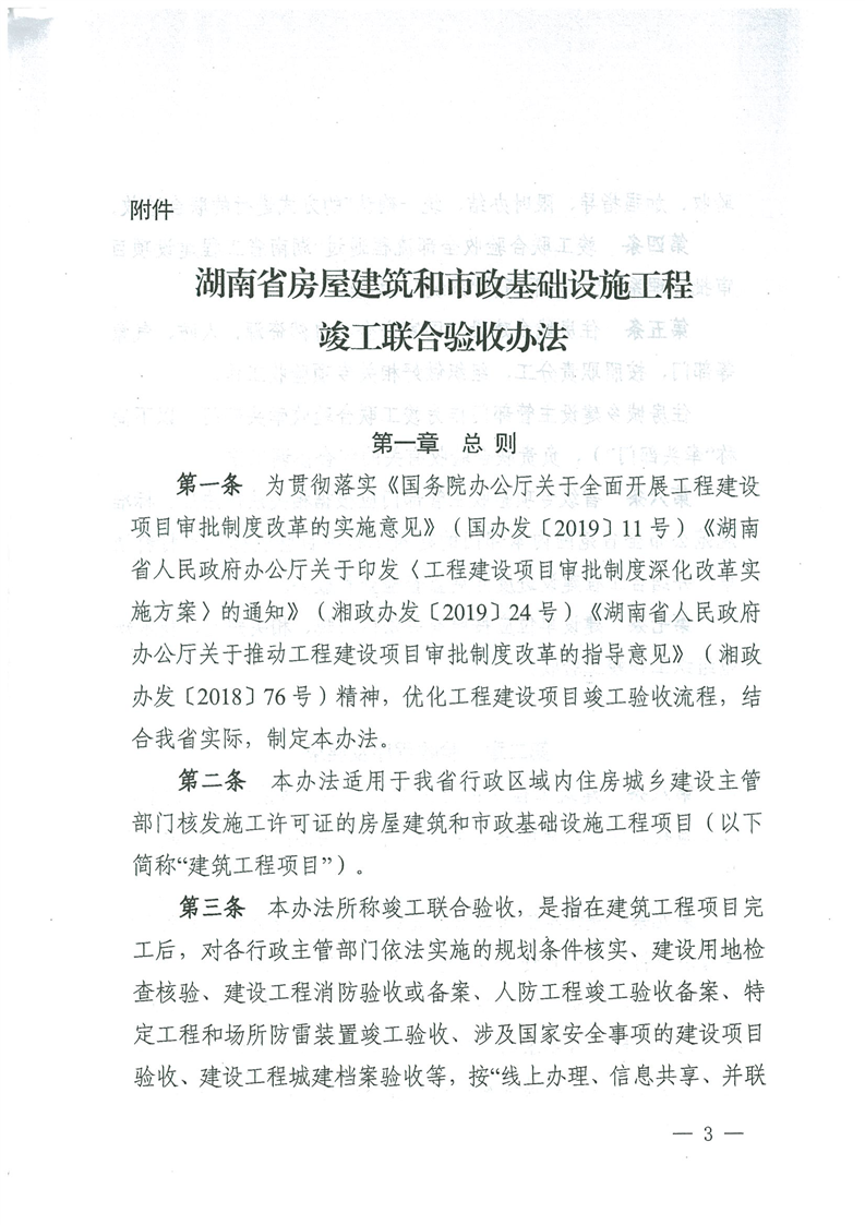 湖南省住房和城鄉建設廳等五部門關於印發《湖南省房屋建築和市政基礎設施工程竣工聯合驗收辦法》的通知