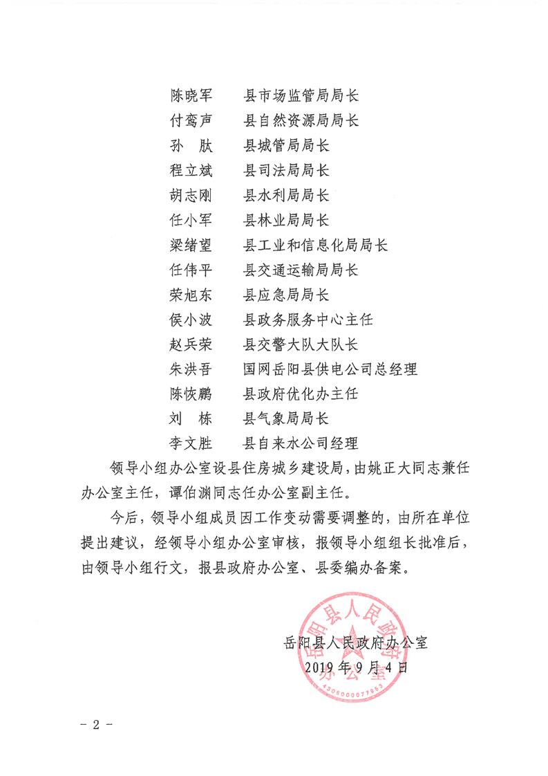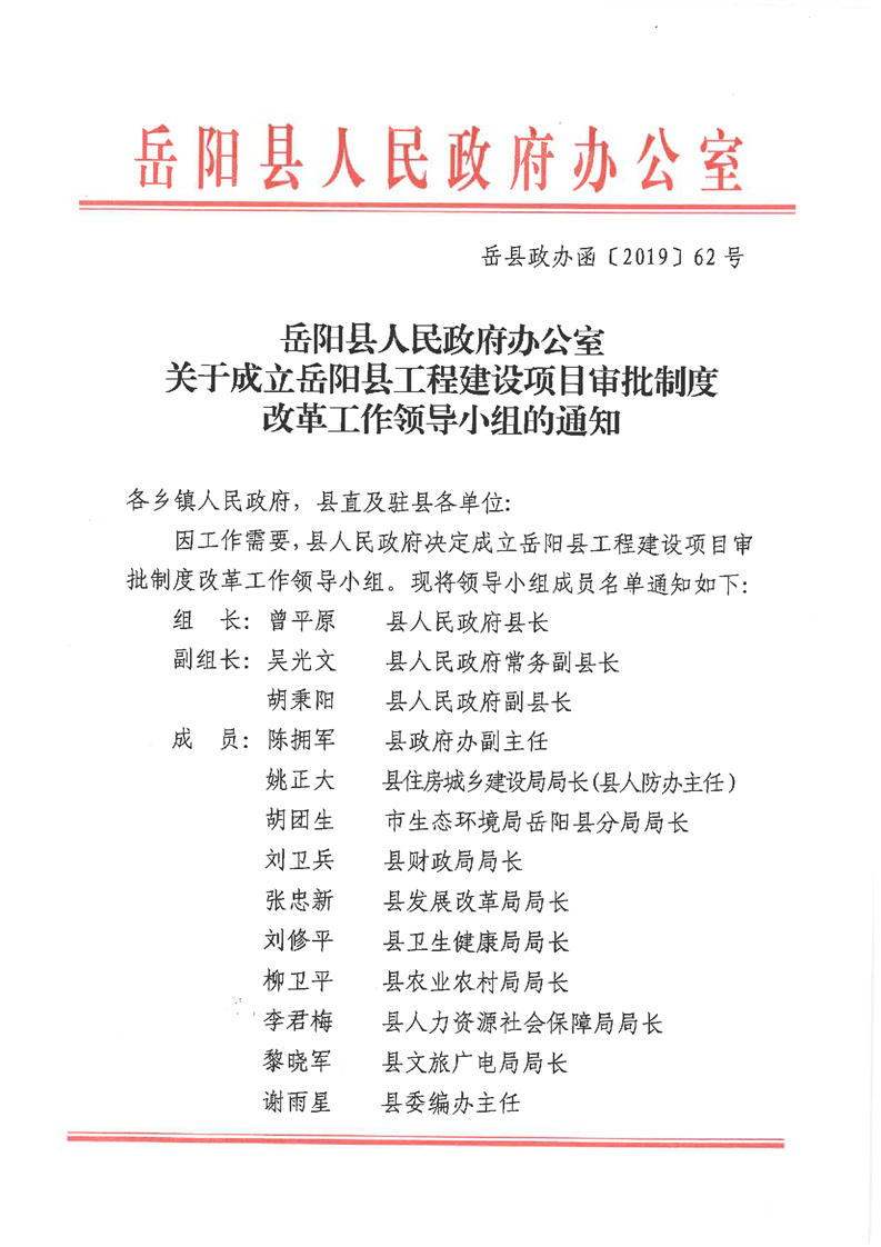 嶽陽縣人民政府辦公室關於成立嶽陽縣工程建設項目審批製度改革工作領導小組的通知