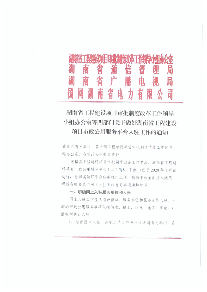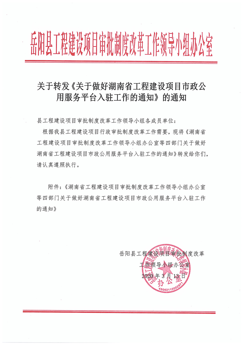 關於轉發《關於做好湖南省工程建設項目市政公用服務平台入駐工作的通知》的通知