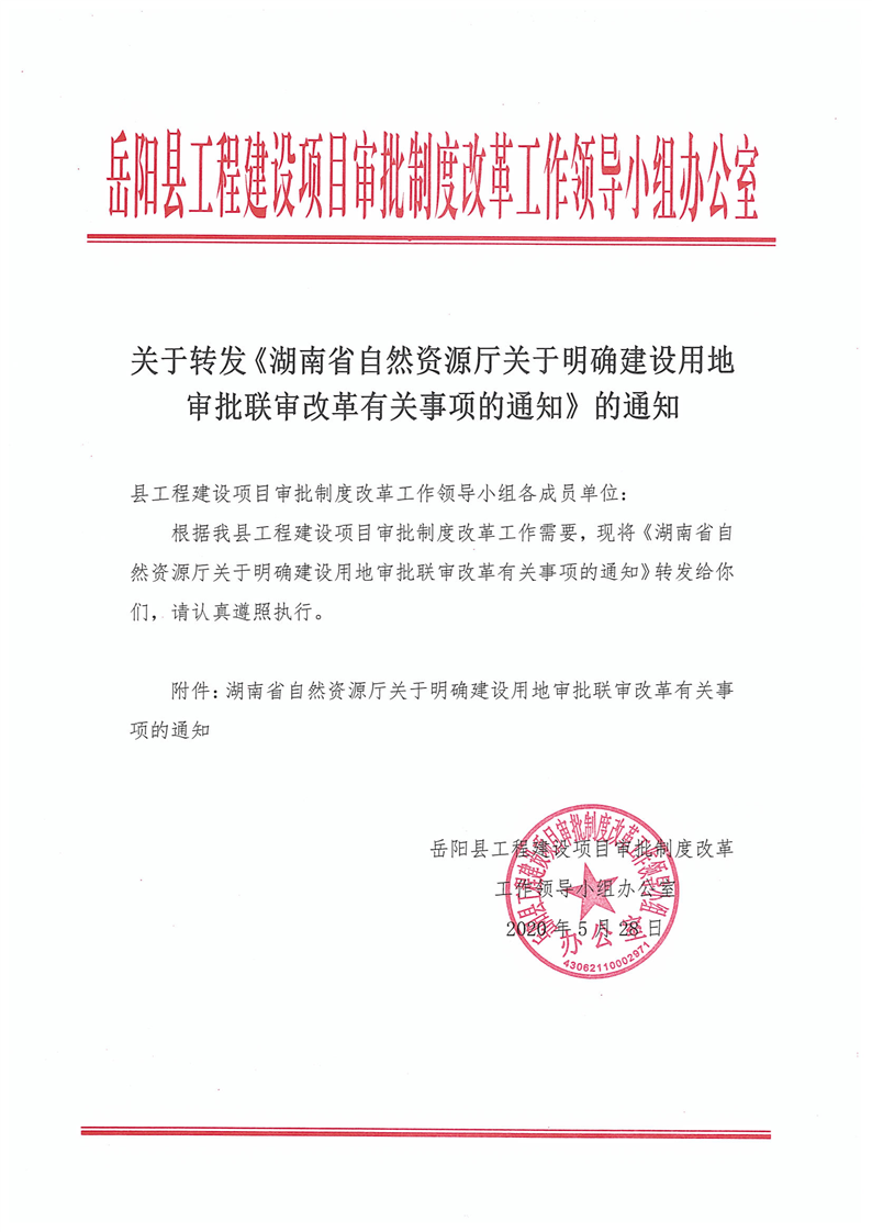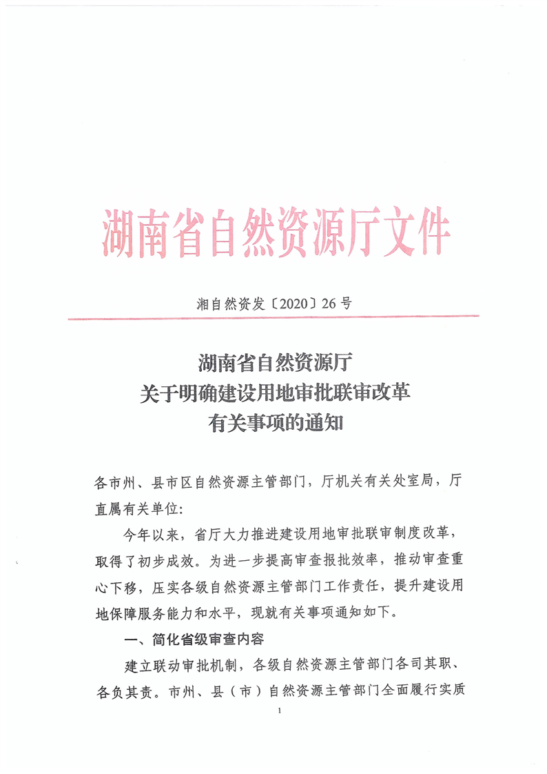 關於轉發《湖南省自然資源廳關於明確建設用地審批聯審改革有關事項的通知》的通知