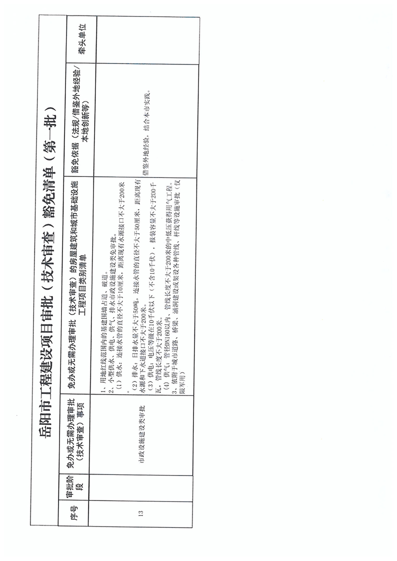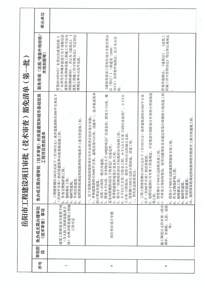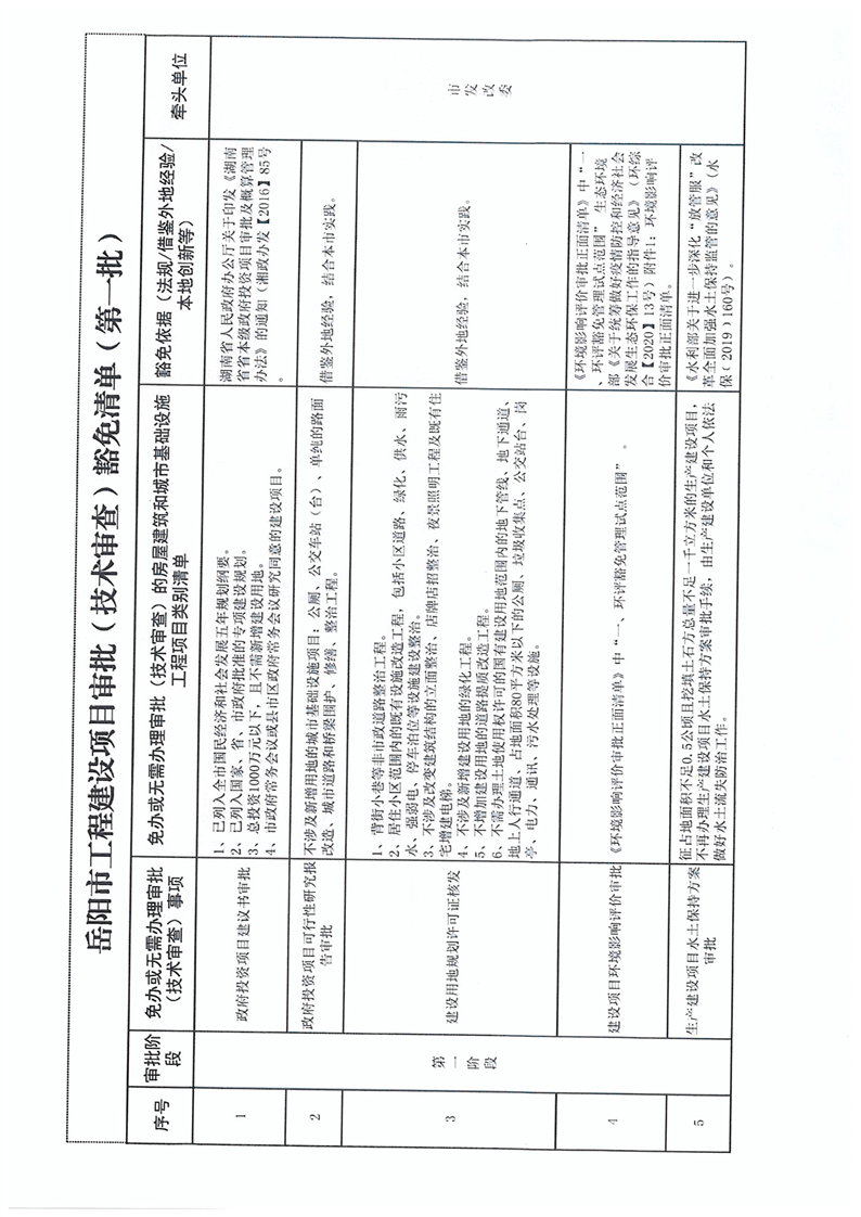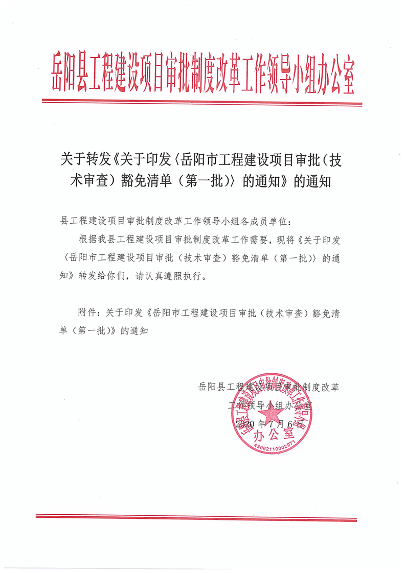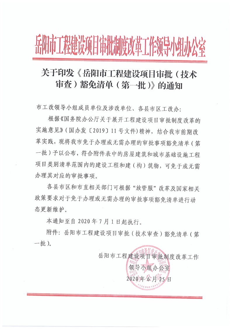 關於轉發《關於印發 嶽陽市工程建設項目審批(技術審查)豁免清單(第一批)的通知》
