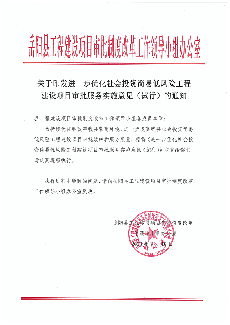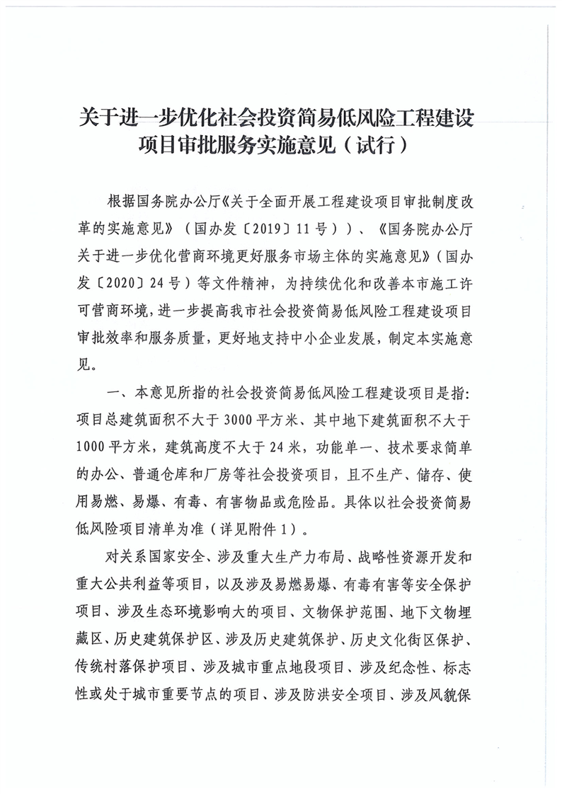 關一印發進一步優化社會投資簡易低風險工程建設項目審批服務實施意見(試行)的通知