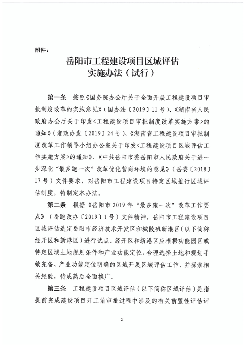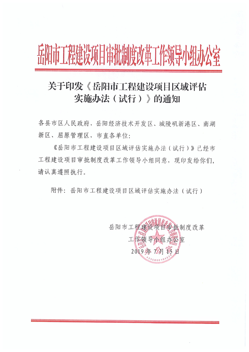 關於轉發《關於印發 嶽陽市工程建設項目區域評估實施辦法(試行)的通知》