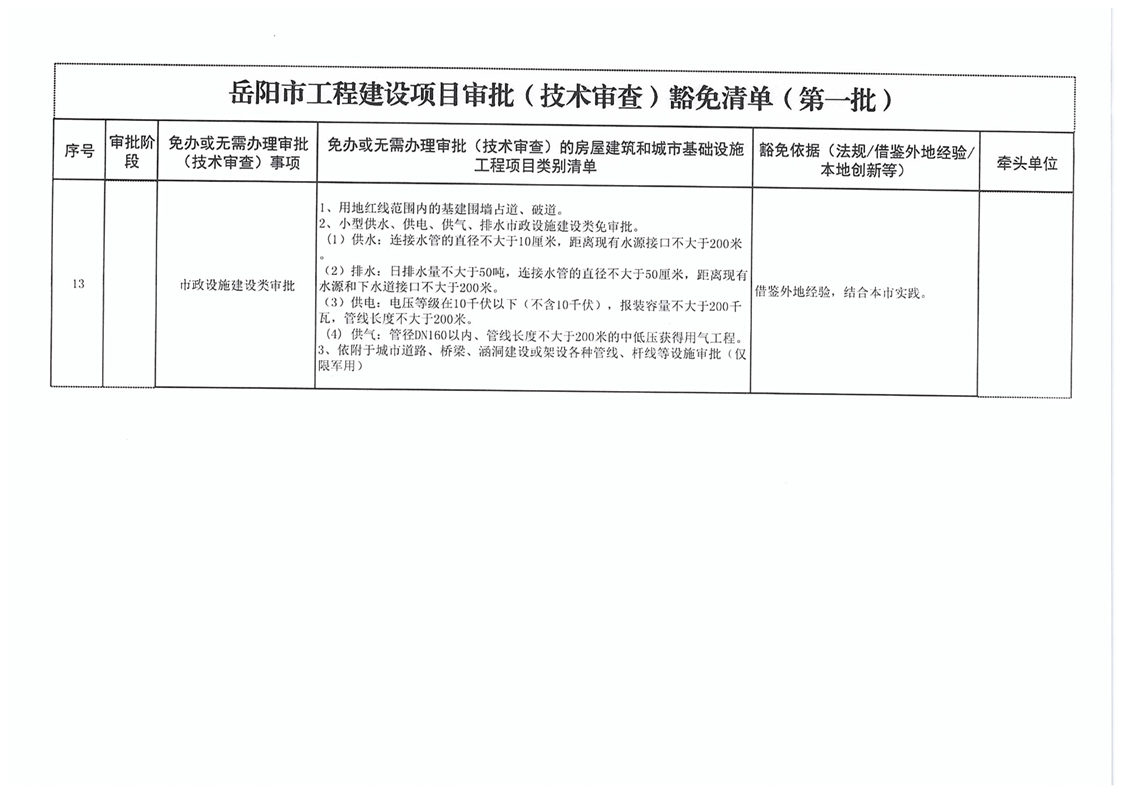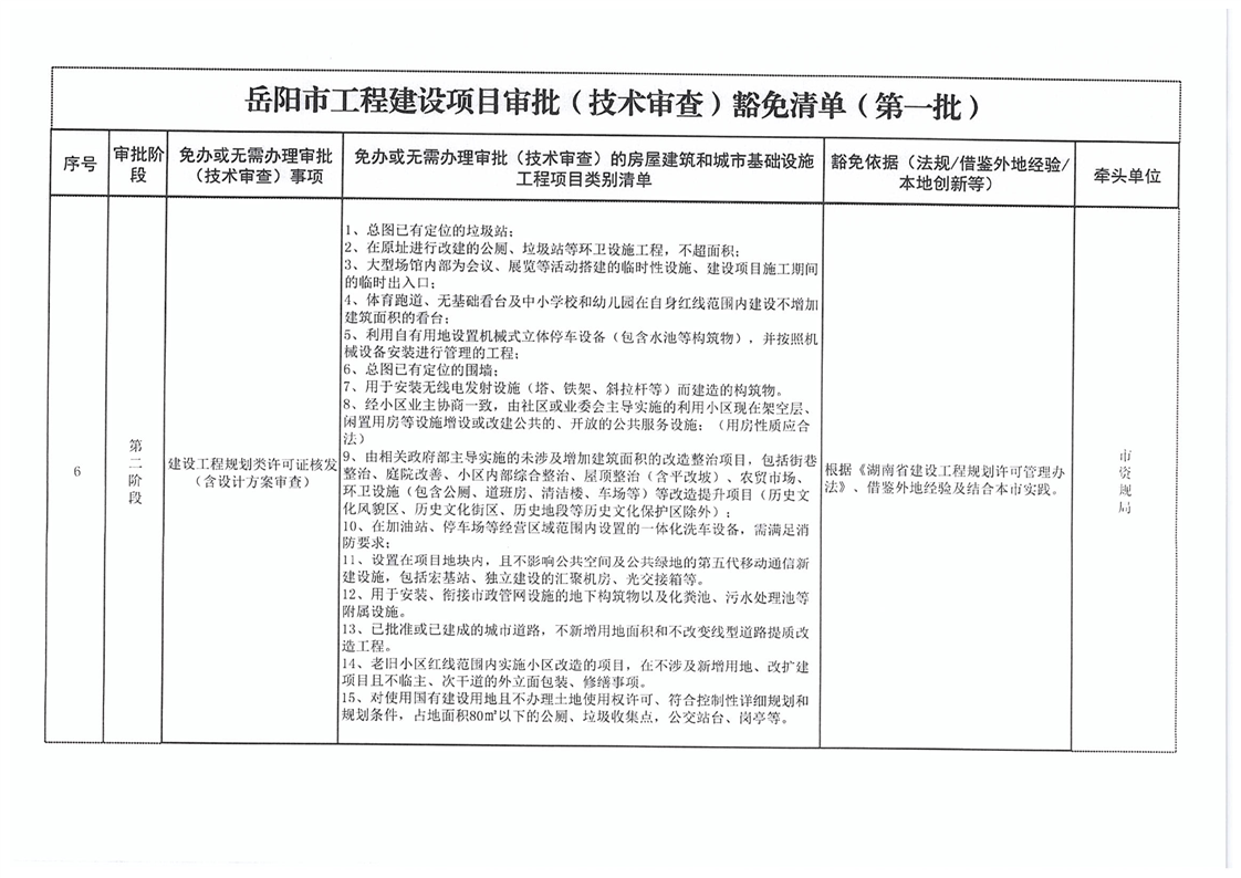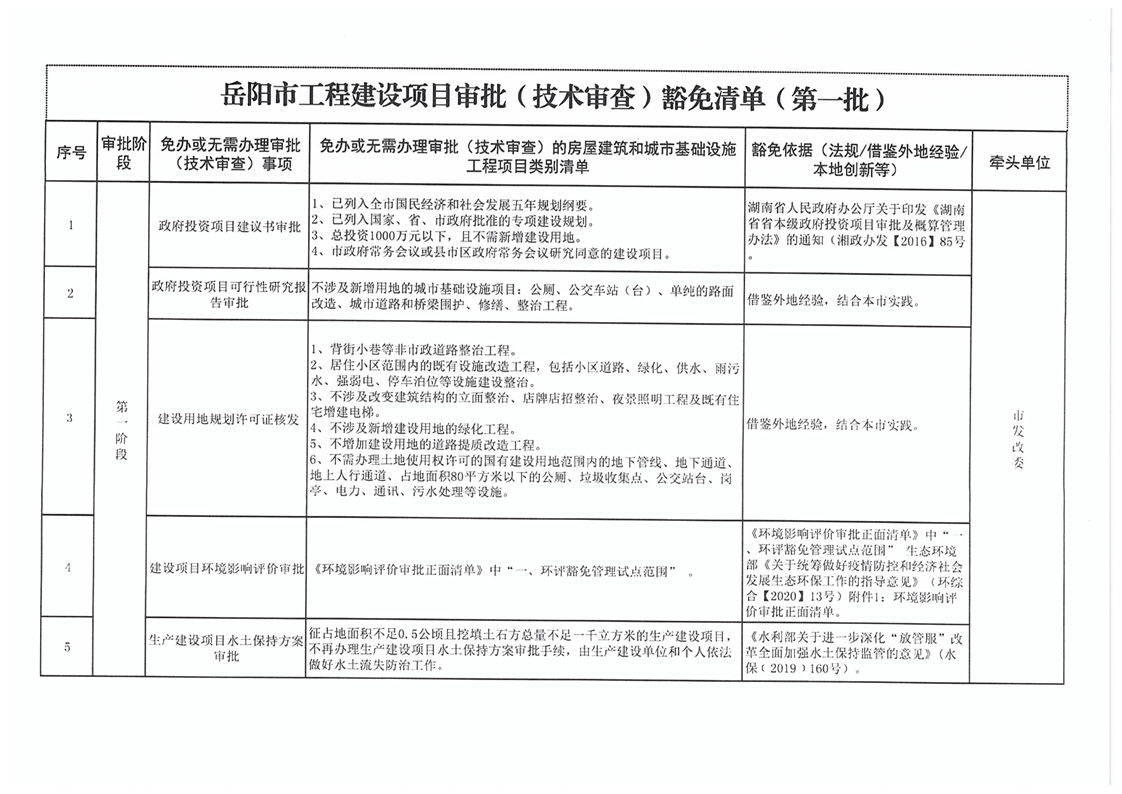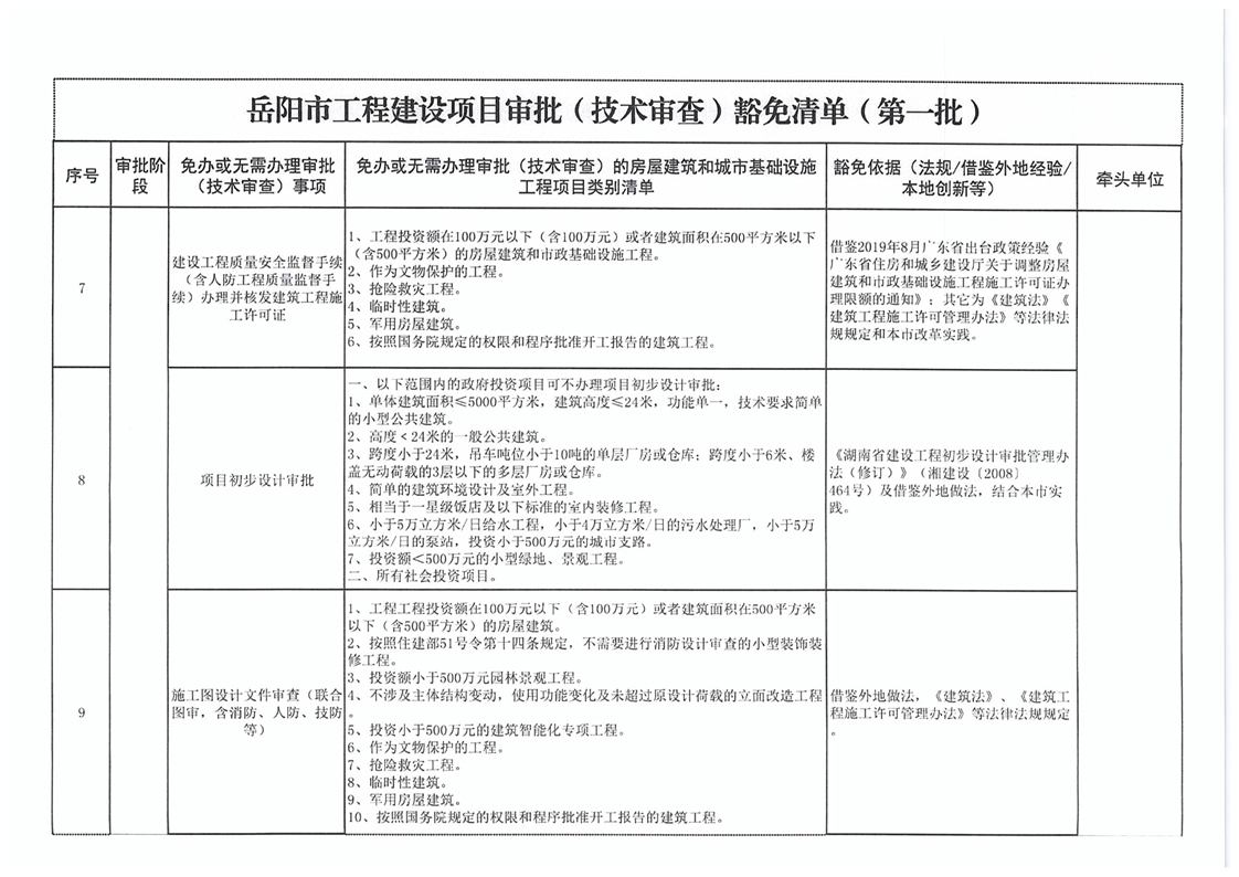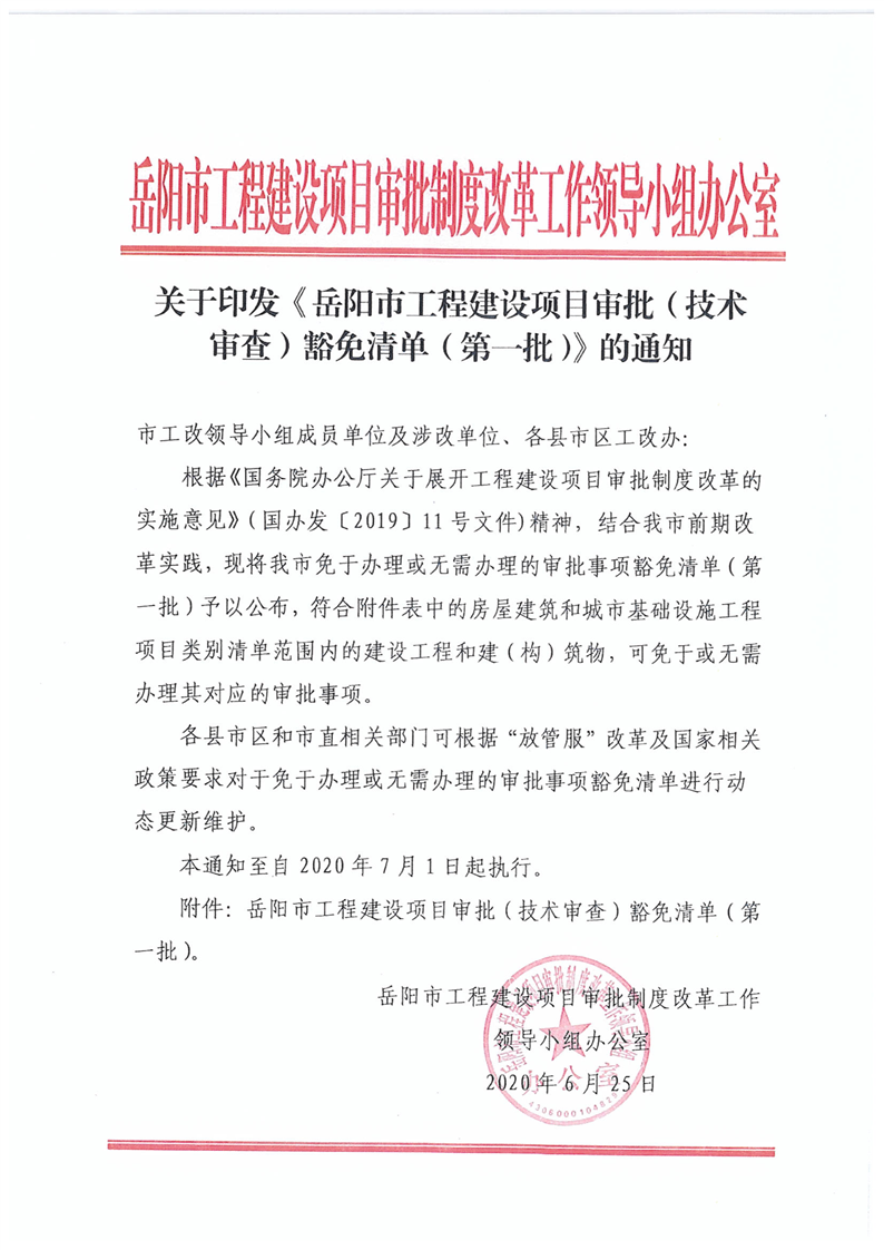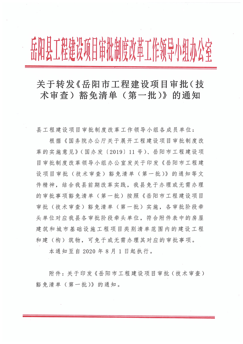 關於轉發《嶽陽市工程建設項目審批(技術審查)豁免清單(第一批)》的通知