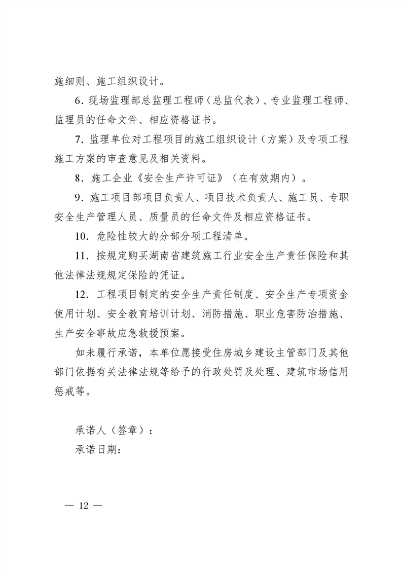 4.湖南省建築工程開工安全生產條件承諾書