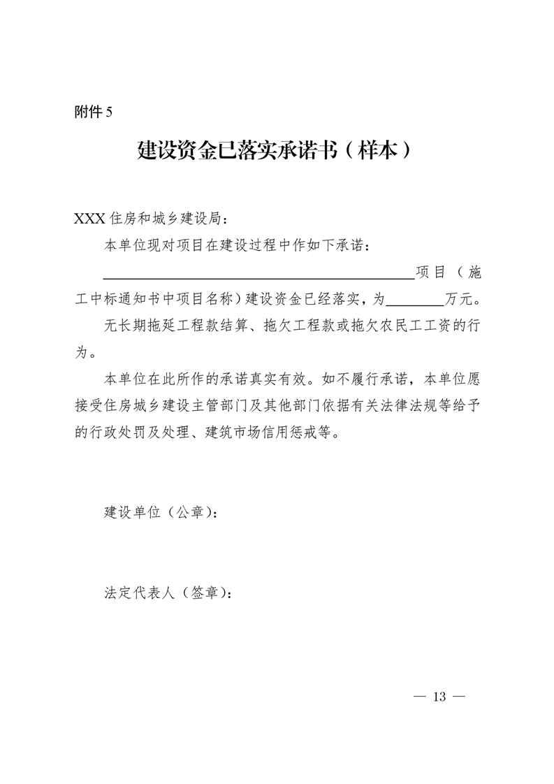 5.建設資金已落實承諾書(樣本)