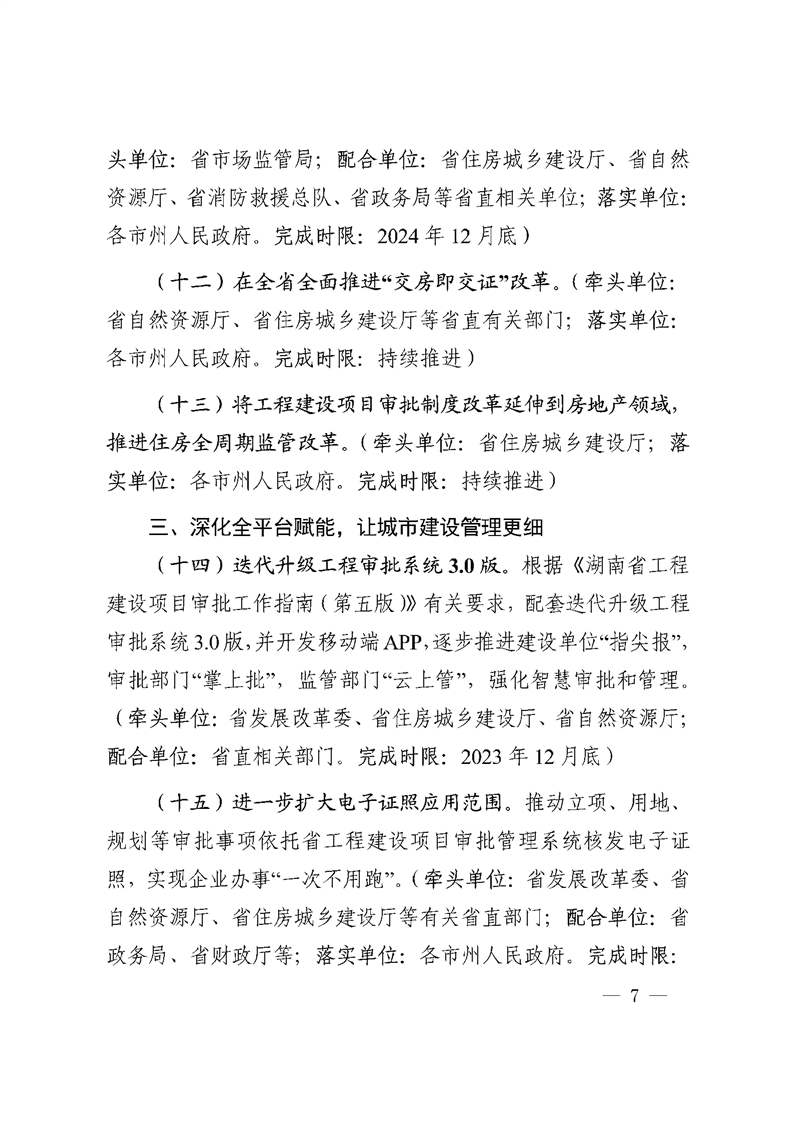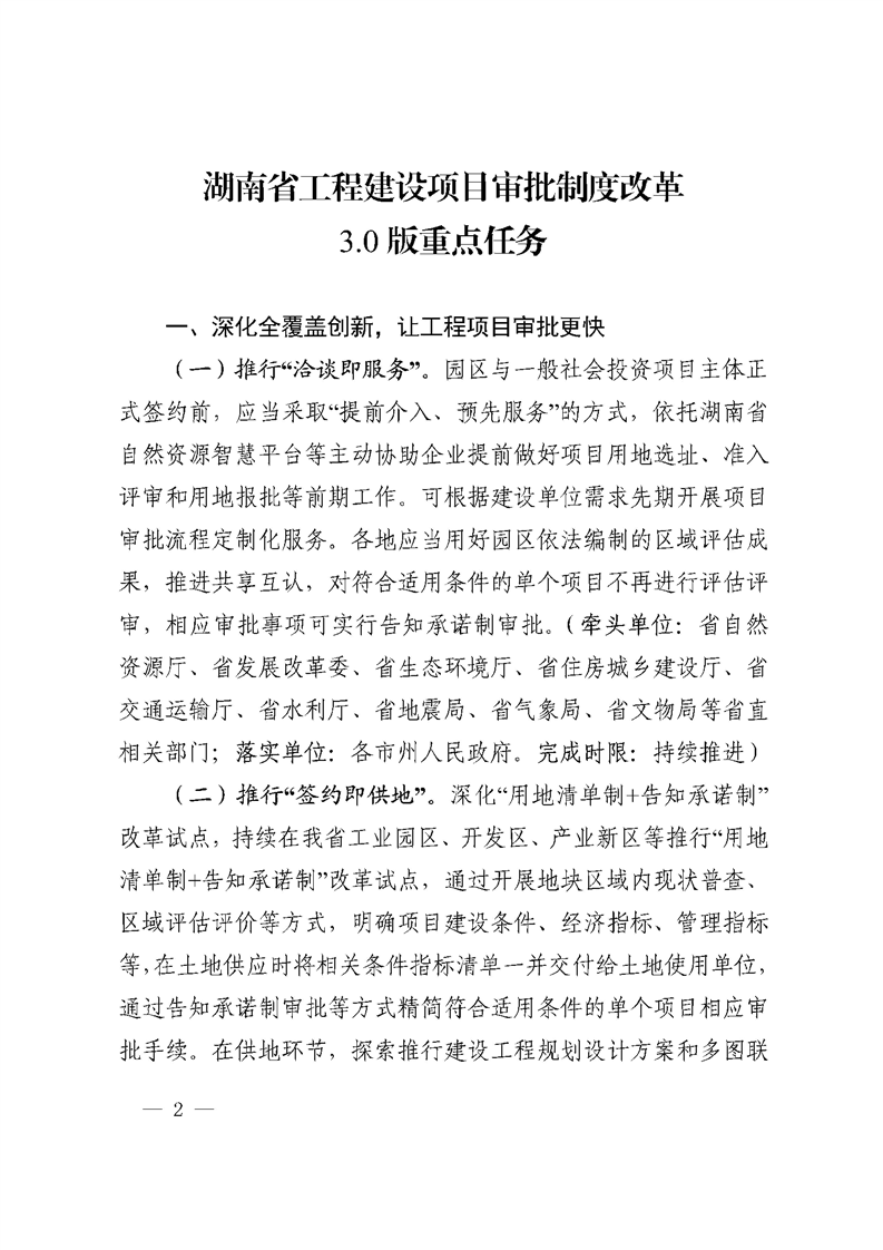 湖南省工程建設項目審批製度改革3.0版重點任務
