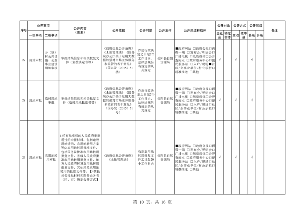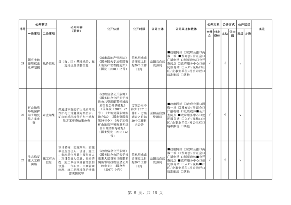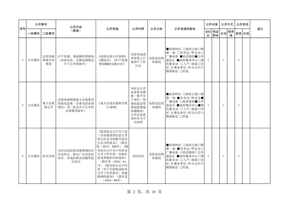 2024年自然資源領域基層政務公開標準目錄
