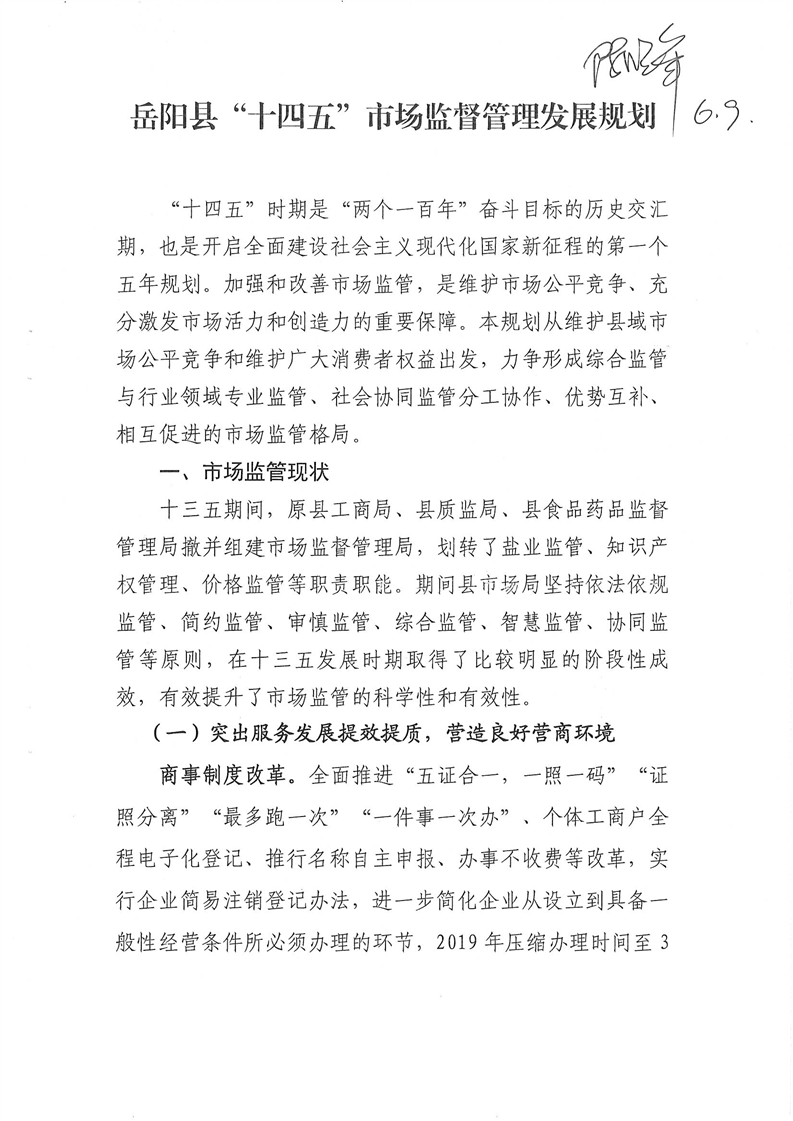 嶽陽縣市場局“十四五”發展規劃