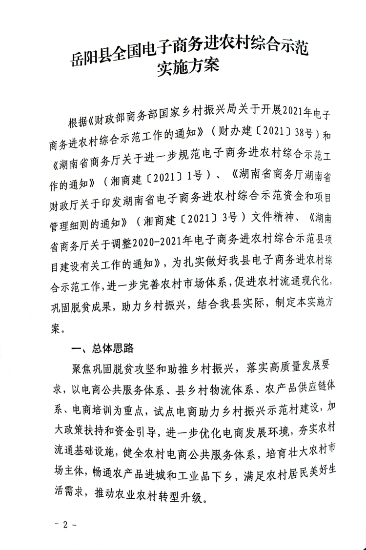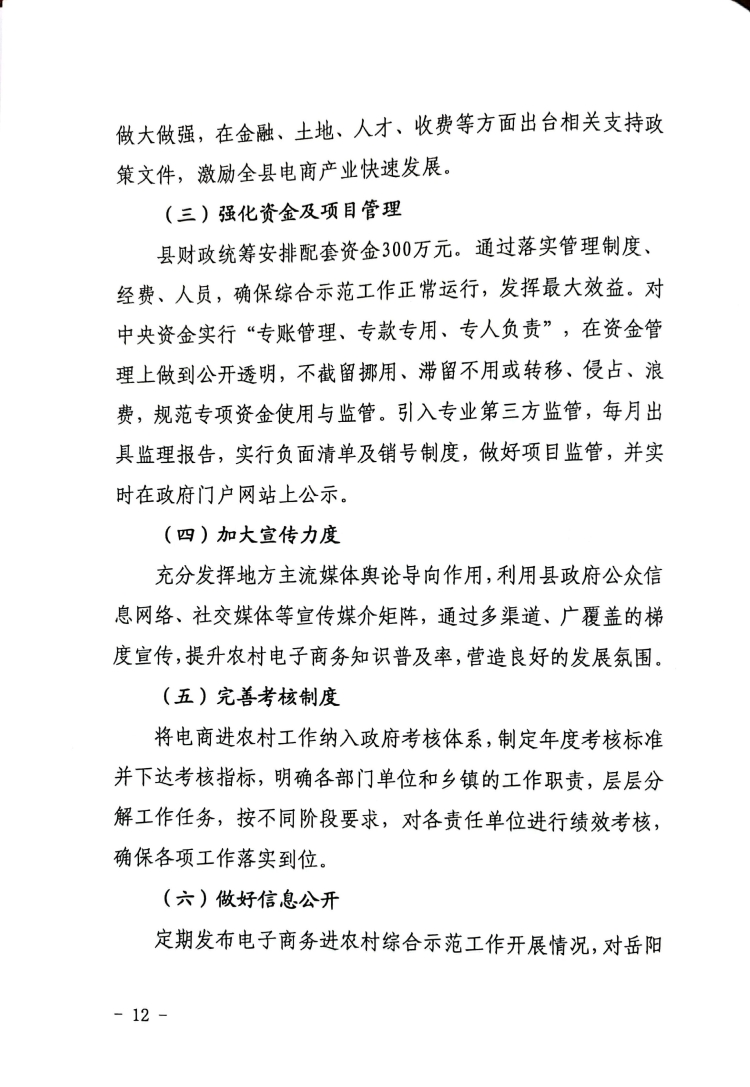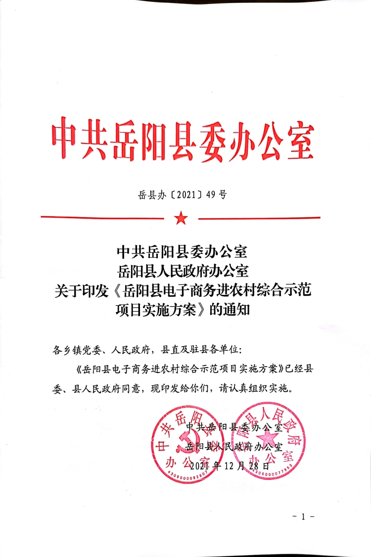 關於印發《嶽陽縣電子商務進農村綜合示範項目實施方案》的通知