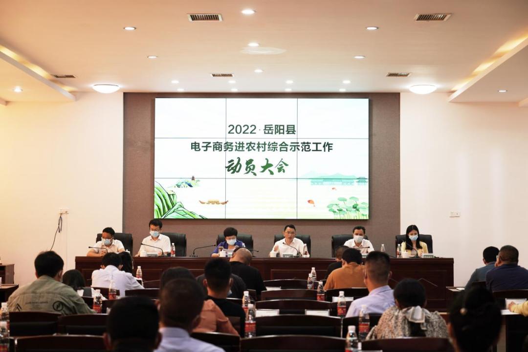2022年5月23日下午,嶽陽縣電子商務進農村綜合示範工作動員大會在中共嶽陽縣委黨校召開。縣人大常委會副主任彭碧芳、縣人民政府副縣長李德軍、縣政府辦副主任湯建軍、縣商務糧食局局長喻新亞、項目承建單位湖南嘉和文化傳播有限公司董事長方曉恩、相關職能部門分管電子商務工作負責人、15個鄉鎮分管電子商務工作負責人和21家農特產品企業及電商企業代表參加會議。