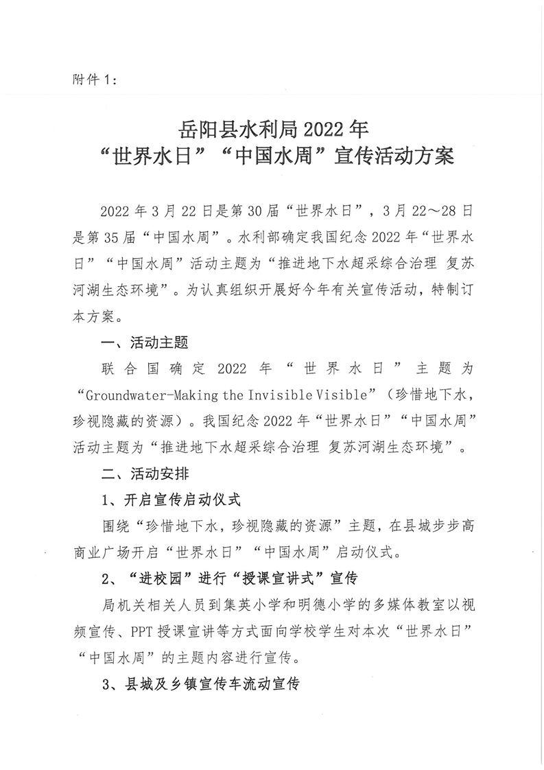嶽陽縣水利局關於印發《2022年“世界水日”“中國水周”宣傳活動方案》的通知