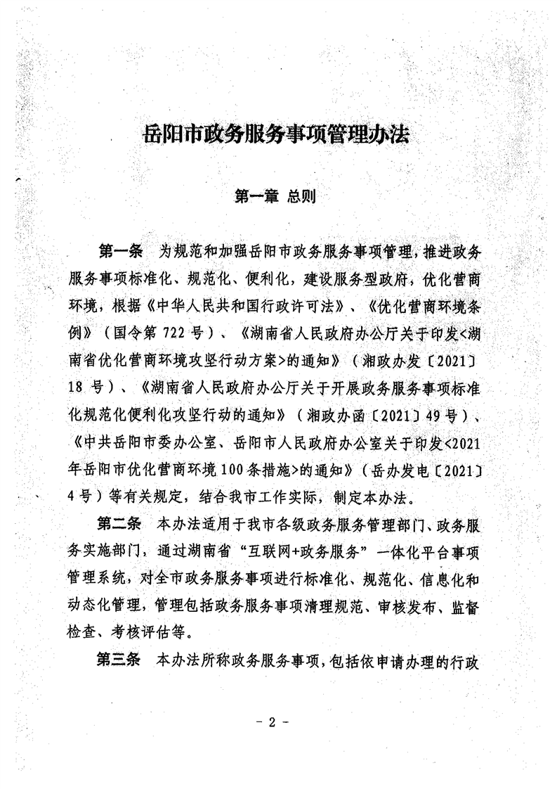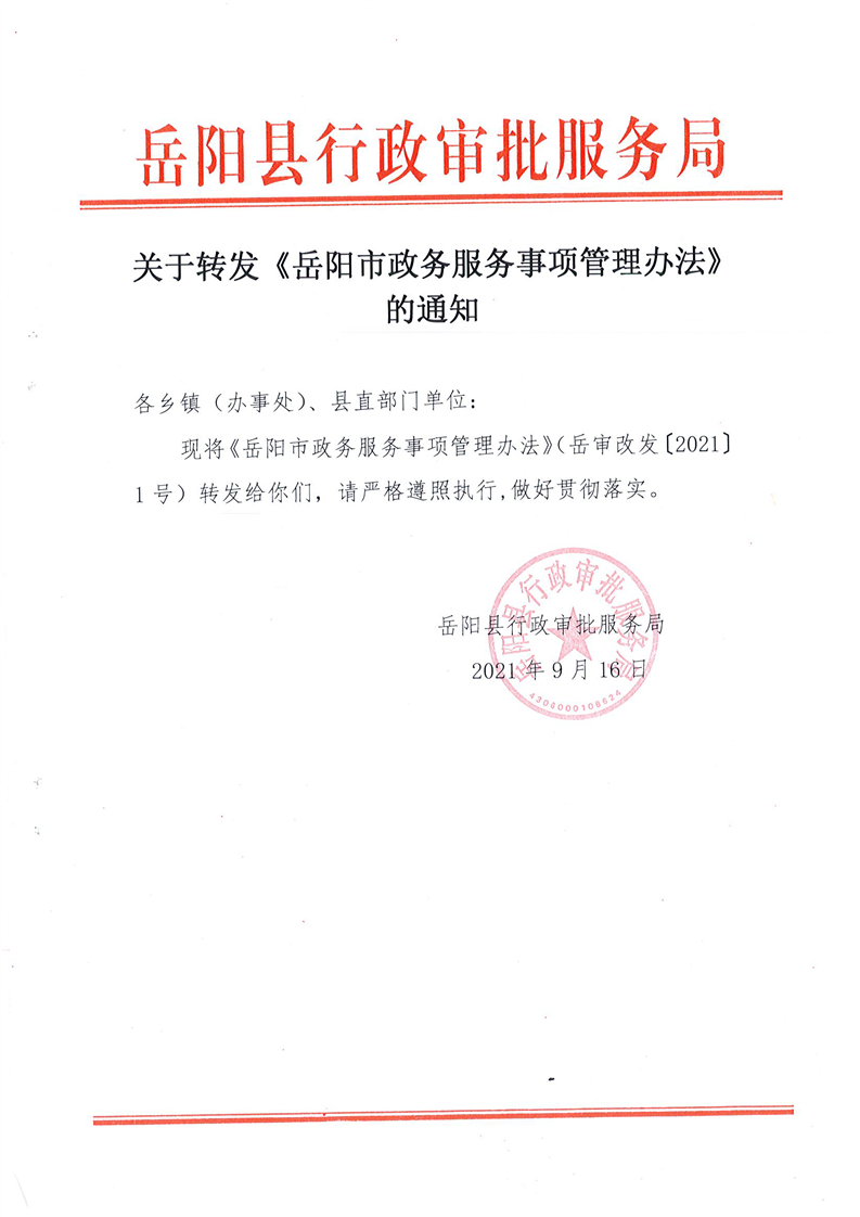 嶽陽縣行政審批服務局關於轉發《嶽陽市政務服務事項管理辦法》的通知