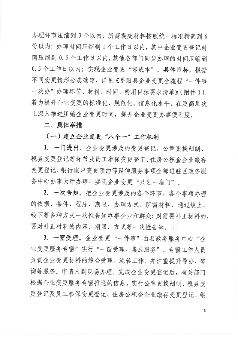 嶽陽縣市場監督管理局:關於印發《嶽陽縣推進企業變更全流程“一件事一次辦”便利化改革實施方案》的通知
