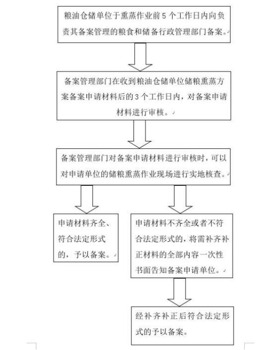 1.《糧油倉儲管理辦法》(國家發展和改革委員會令2009年第5號)第二十五條:“進行熏蒸作業的,應當製訂熏蒸方案,並報當地糧食行政管理部門備案。熏蒸作業中,糧油倉儲單位應當在作業場地周圍設立警示牌和警戒線,禁止無關人員進入熏蒸作業區。” 2.《湖南省糧油倉儲單位儲糧熏蒸方案備案辦法》(湘糧儲〔2017〕98號)全文。