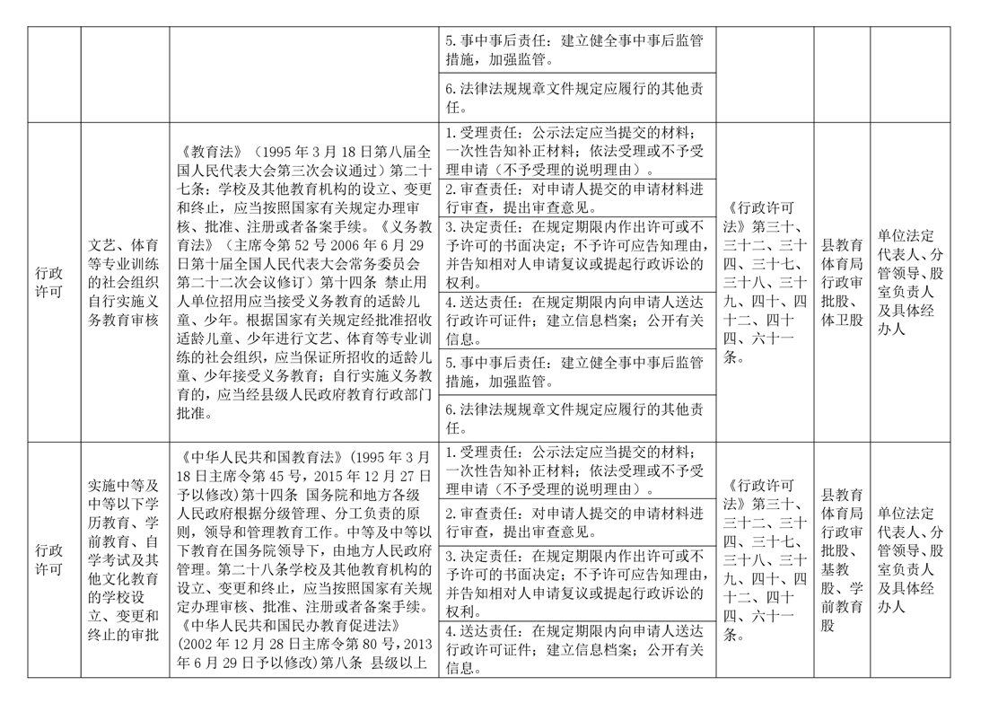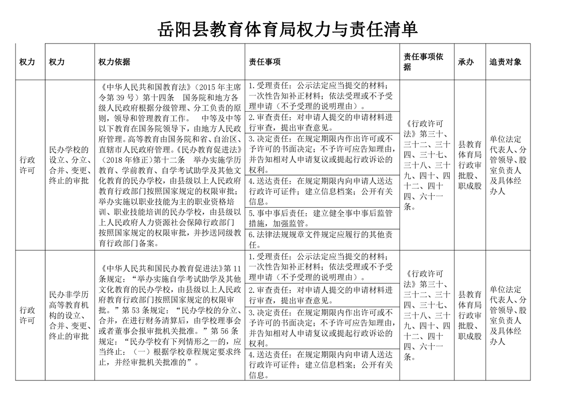 嶽陽縣教育體育局權力與責任清單