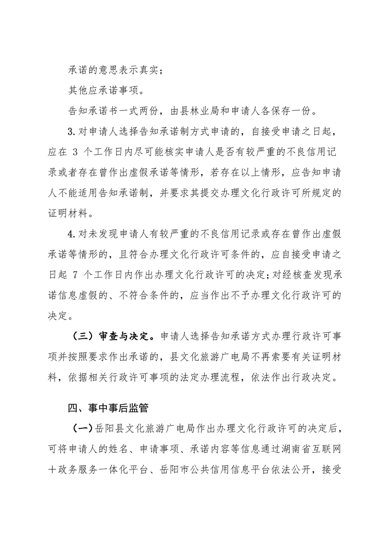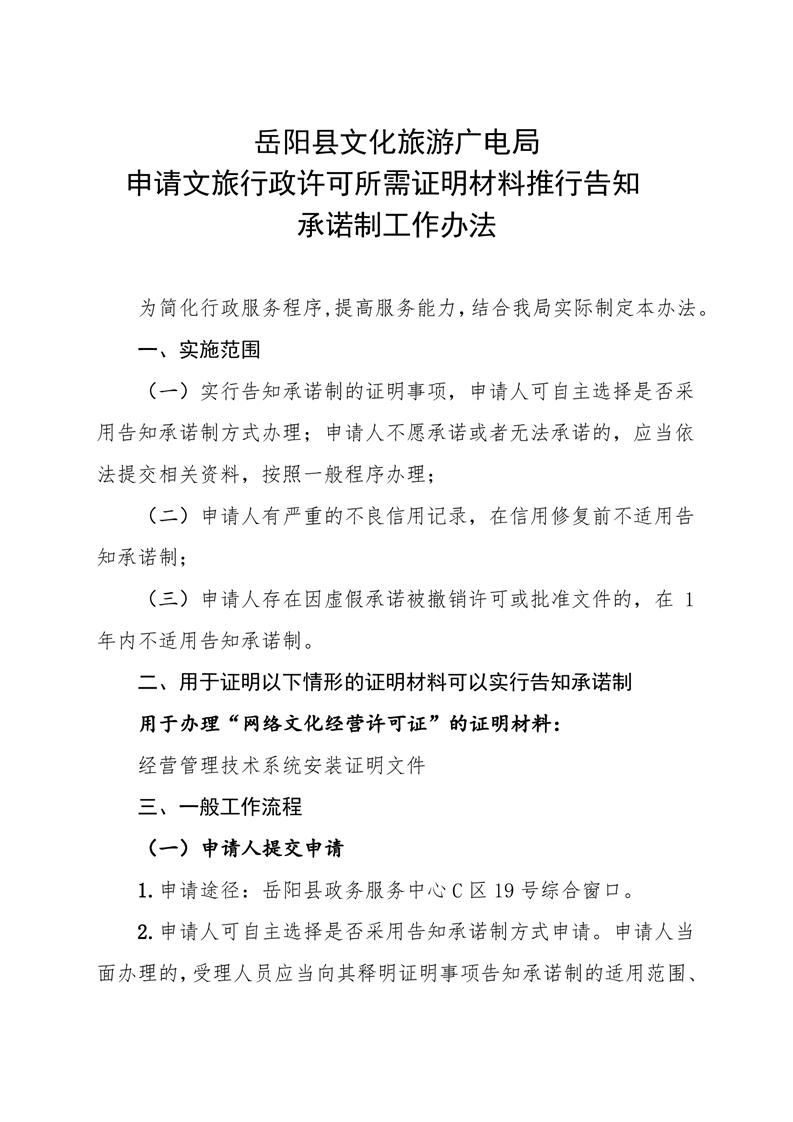 嶽陽縣文化旅遊廣電局申請文旅行政許可所需證明材料推行告知承諾製工作辦法