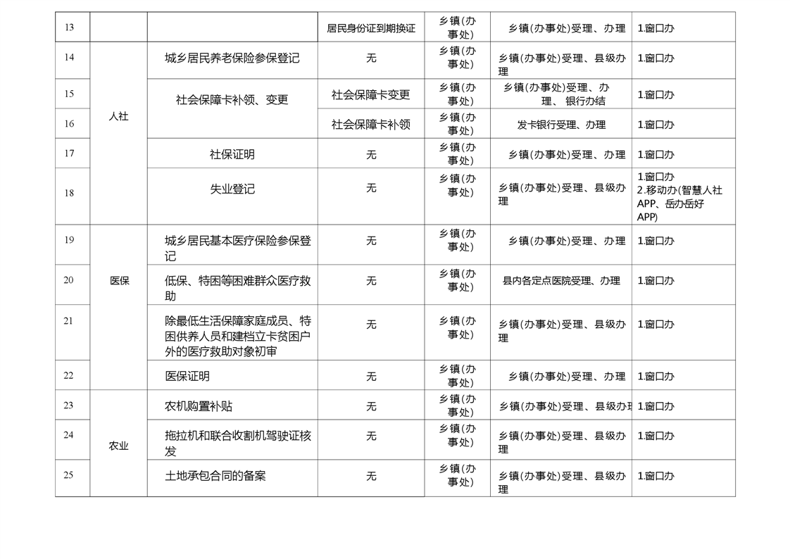嶽陽縣鄉鎮(辦事處)政務服務暨就近辦事項清單