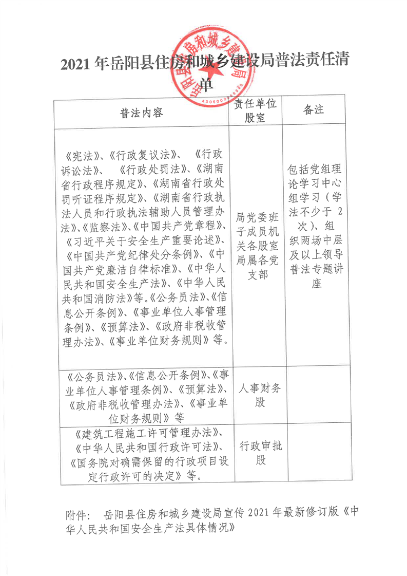 2021年嶽陽縣住房和城鄉建設局普法責任清單