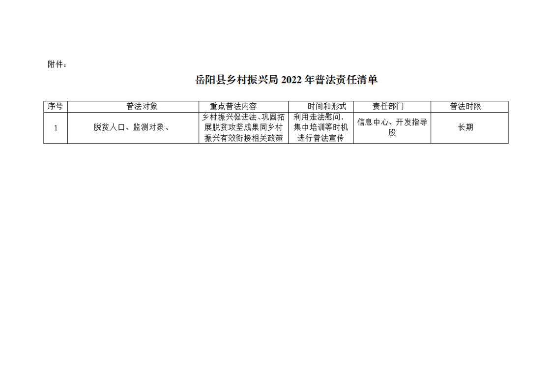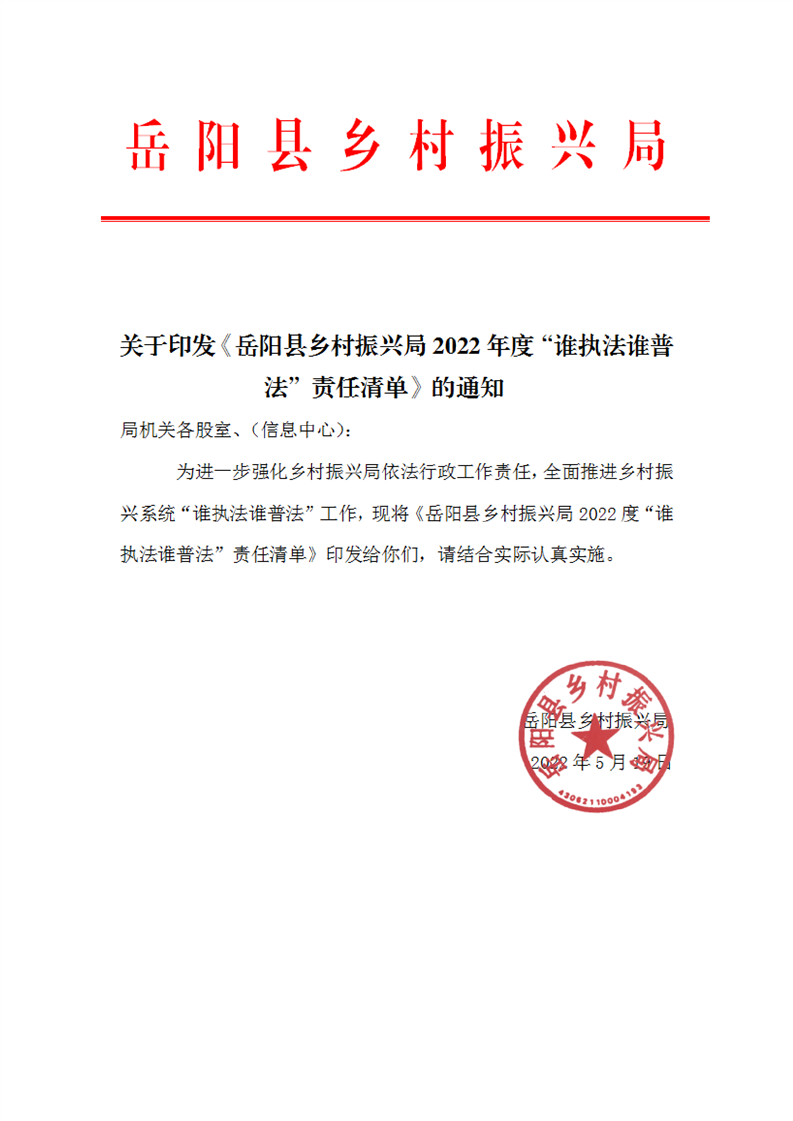 嶽陽縣鄉村振興局2022年度“誰執法誰普法”責任清單