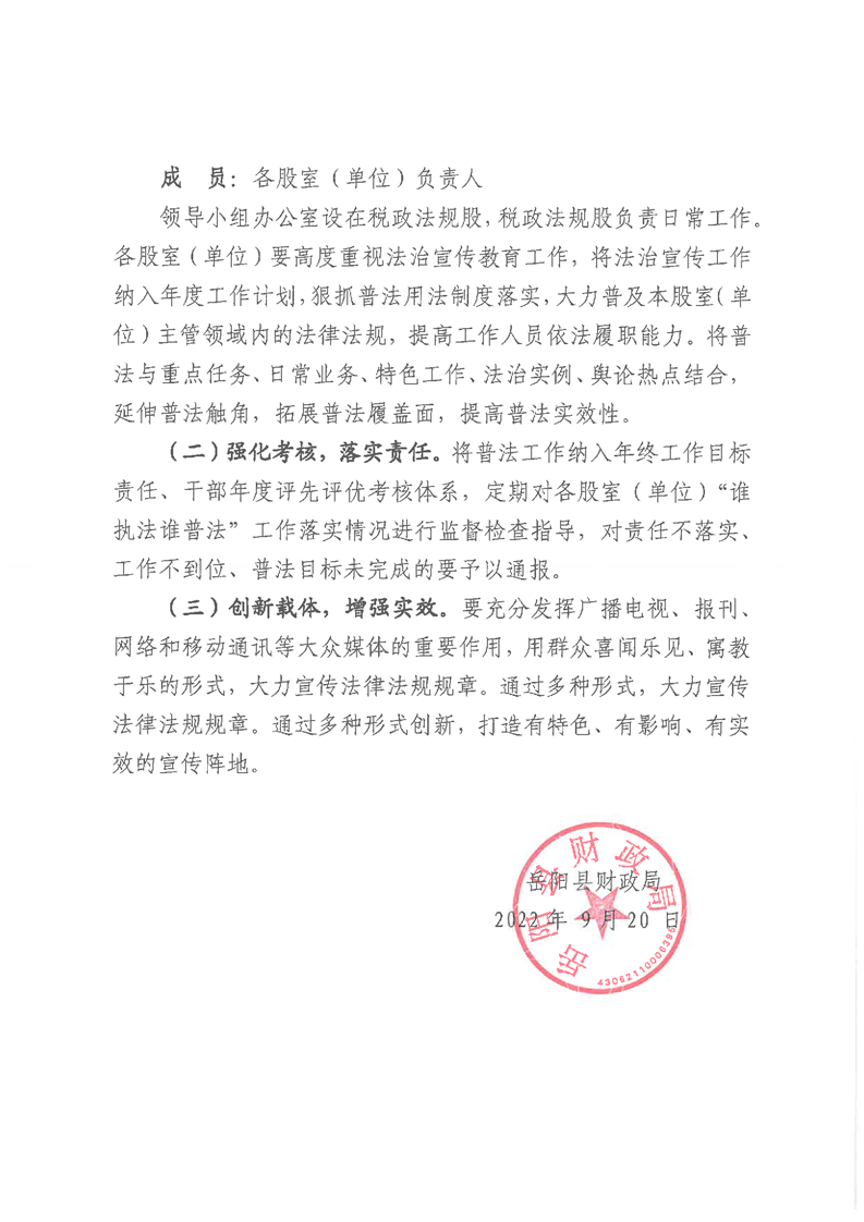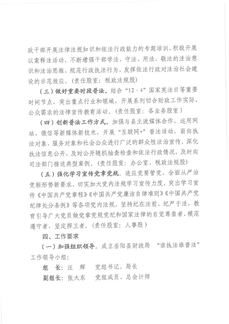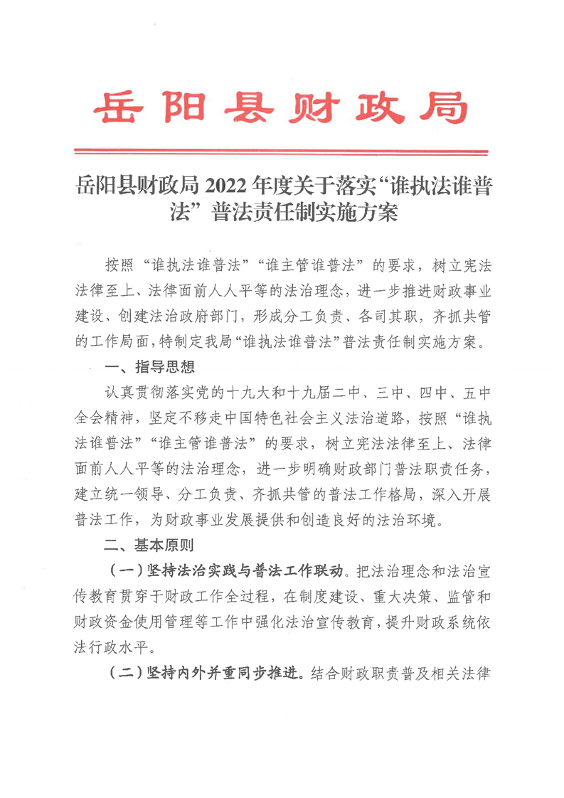 嶽陽縣財政局2022年度關於落實“誰執法誰普法”普法責任製實施方案