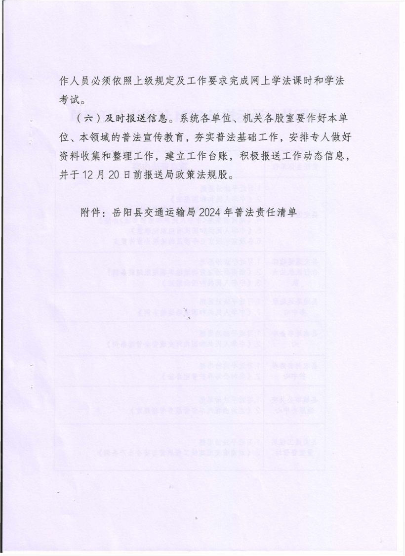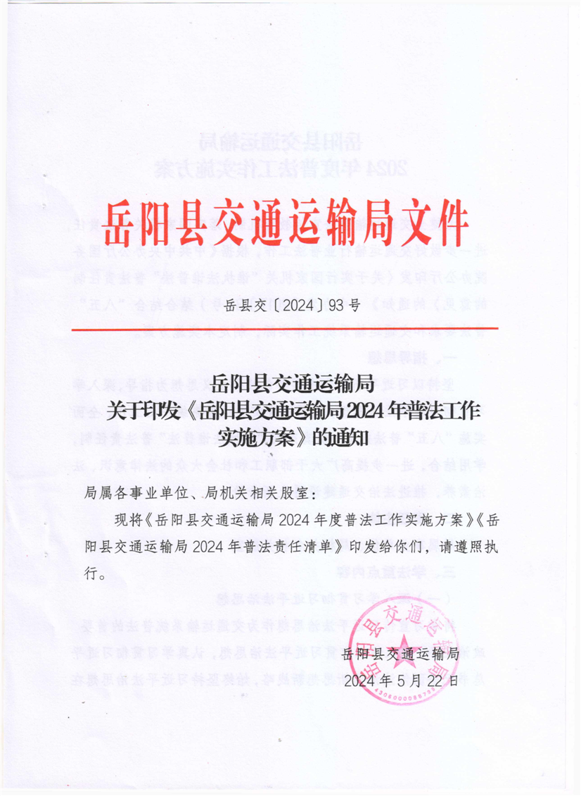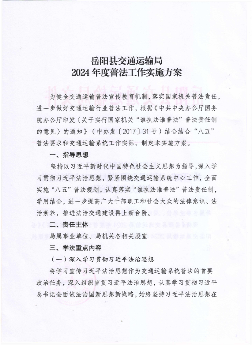 嶽陽縣交通運輸局2024年普法工作實施方案