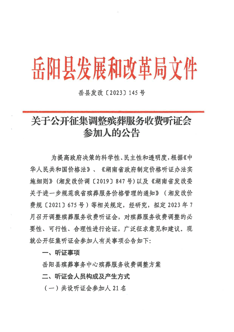 關於公開征集調整殯葬服務收費聽證會參加人的公告