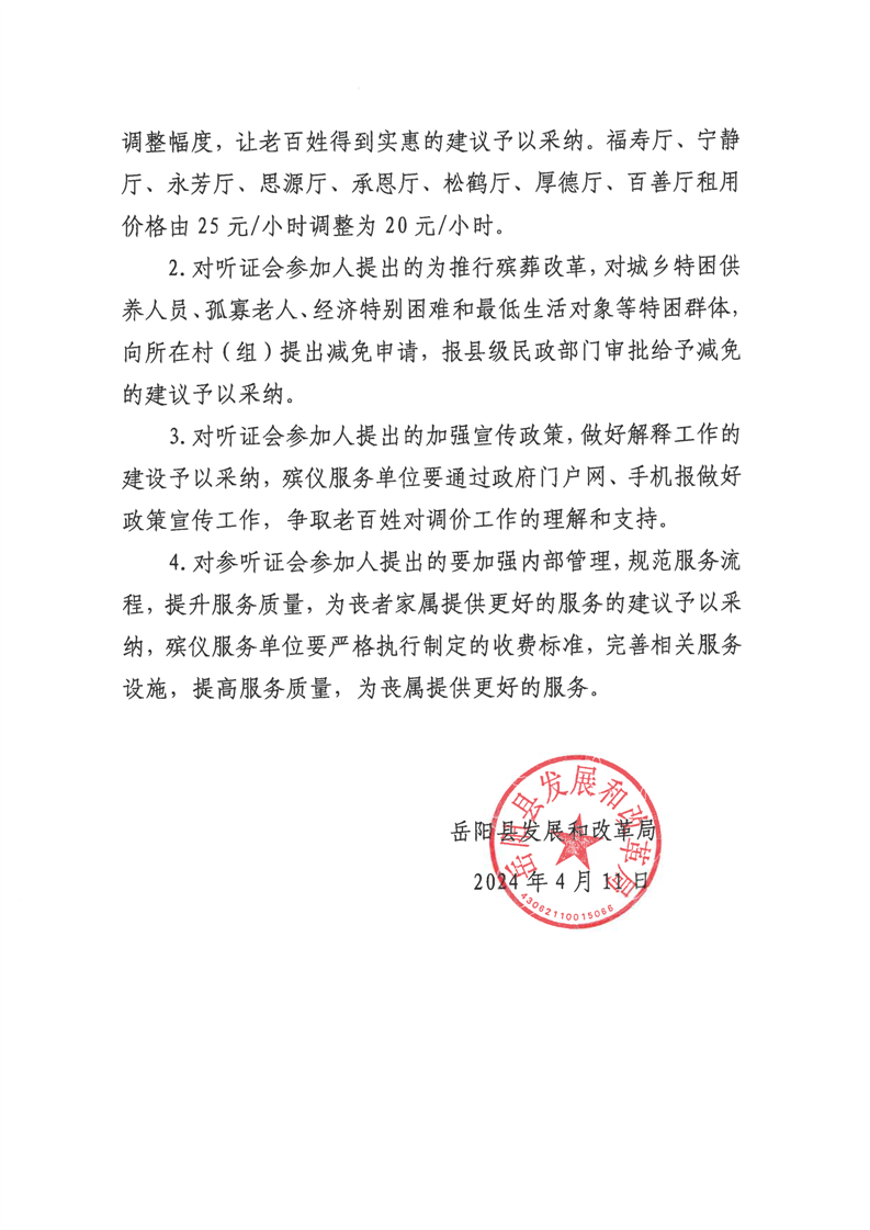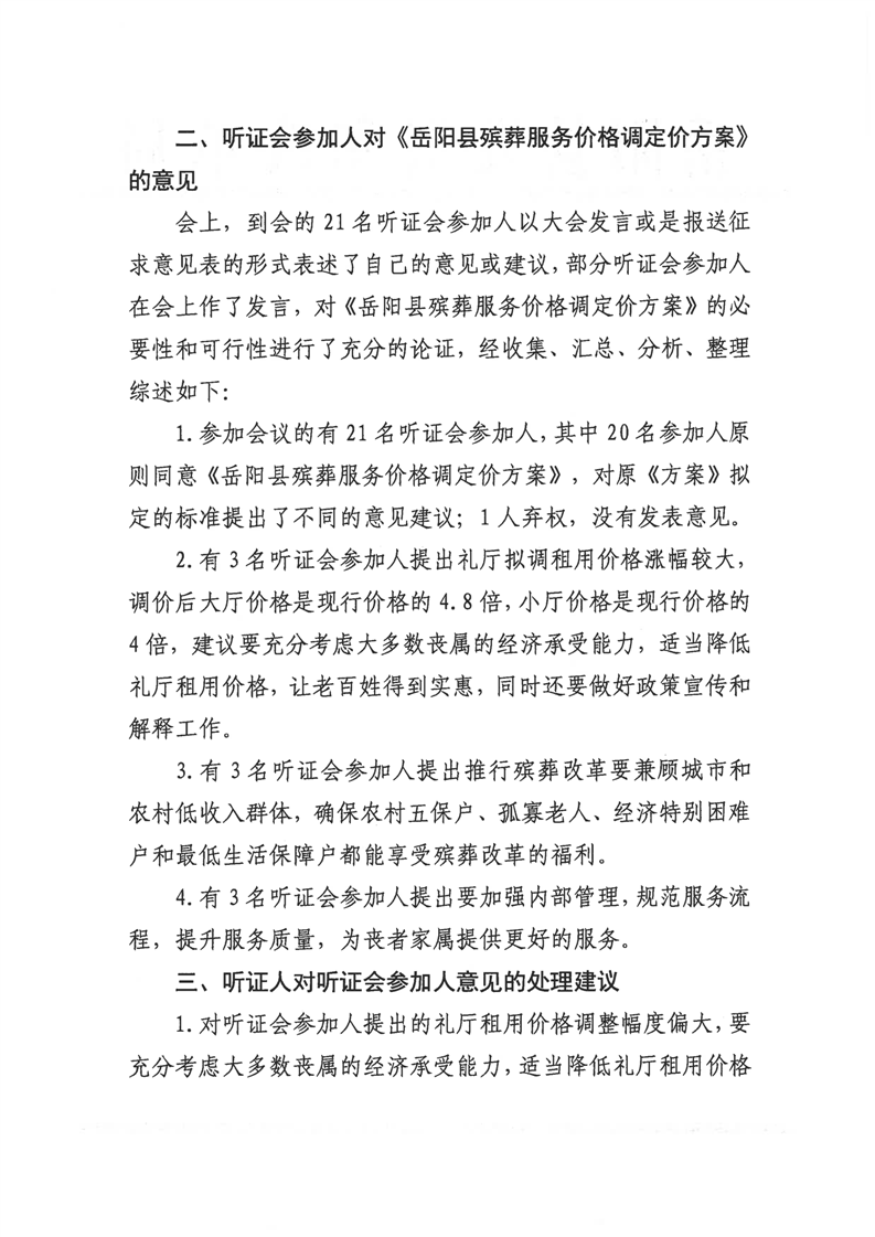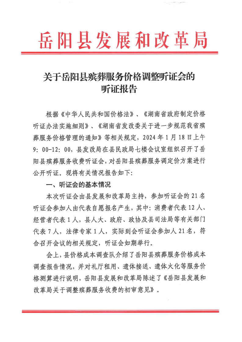 關於嶽陽縣殯葬服務價格調整聽證會的聽證報告