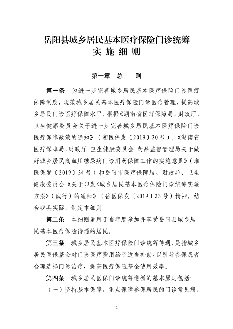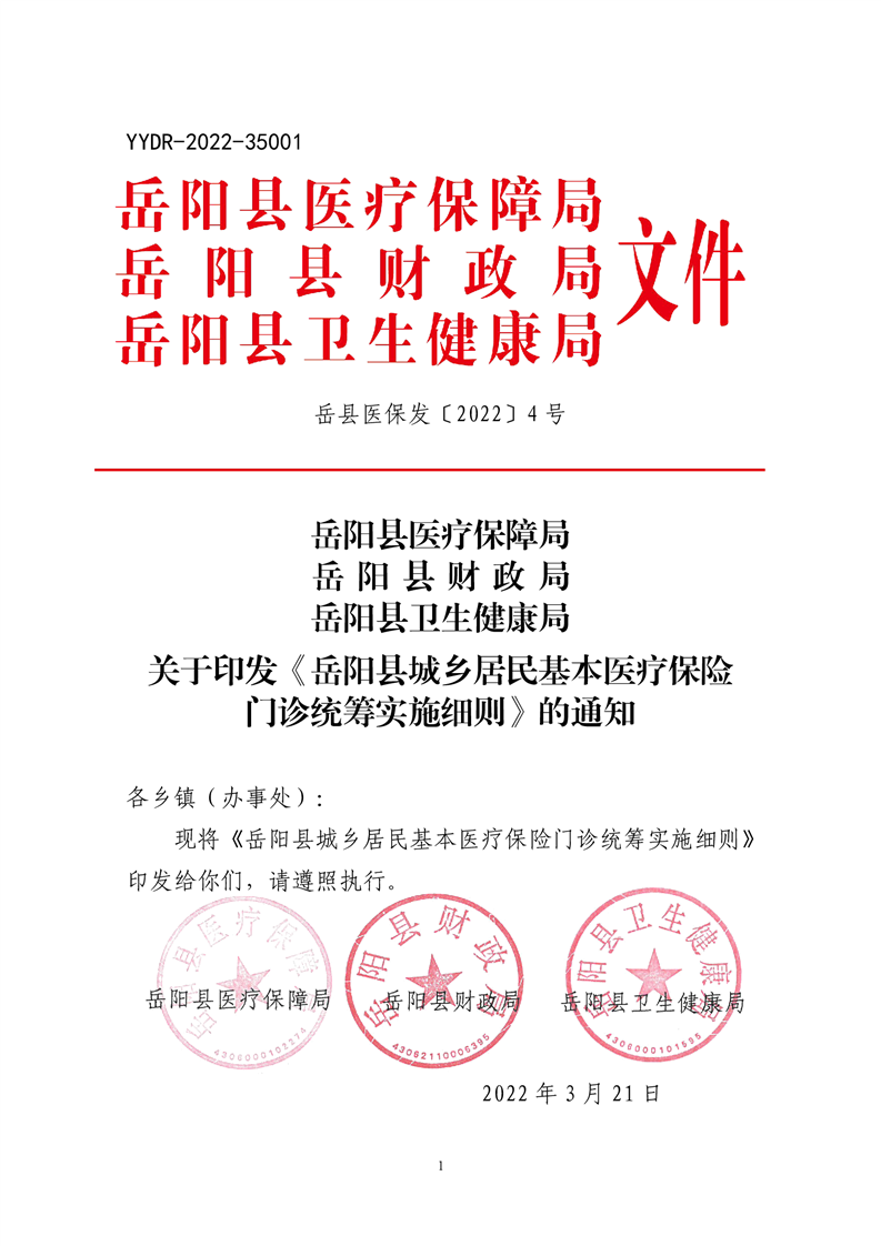 縣醫保局:關於印發《嶽陽縣城鄉居民基本醫療保險門診統籌實施細則》的通知