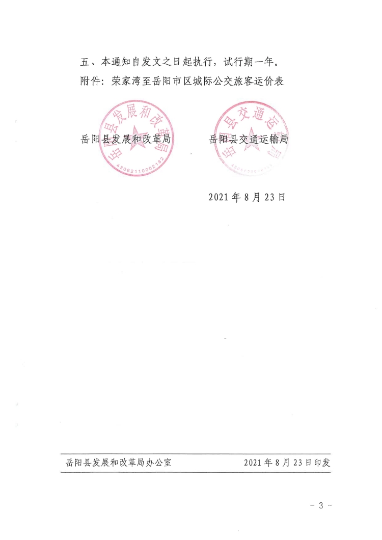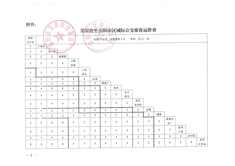 關於榮家灣至嶽陽市區城際公交票價及有關事項的通知