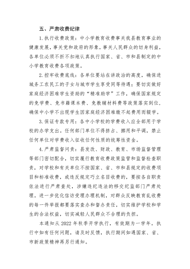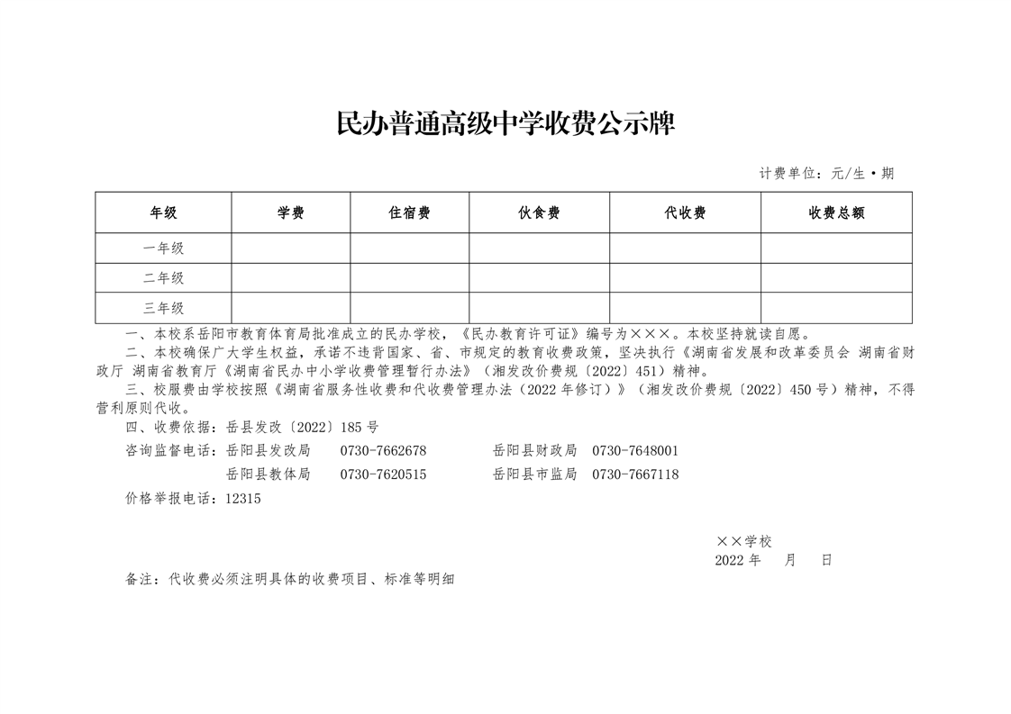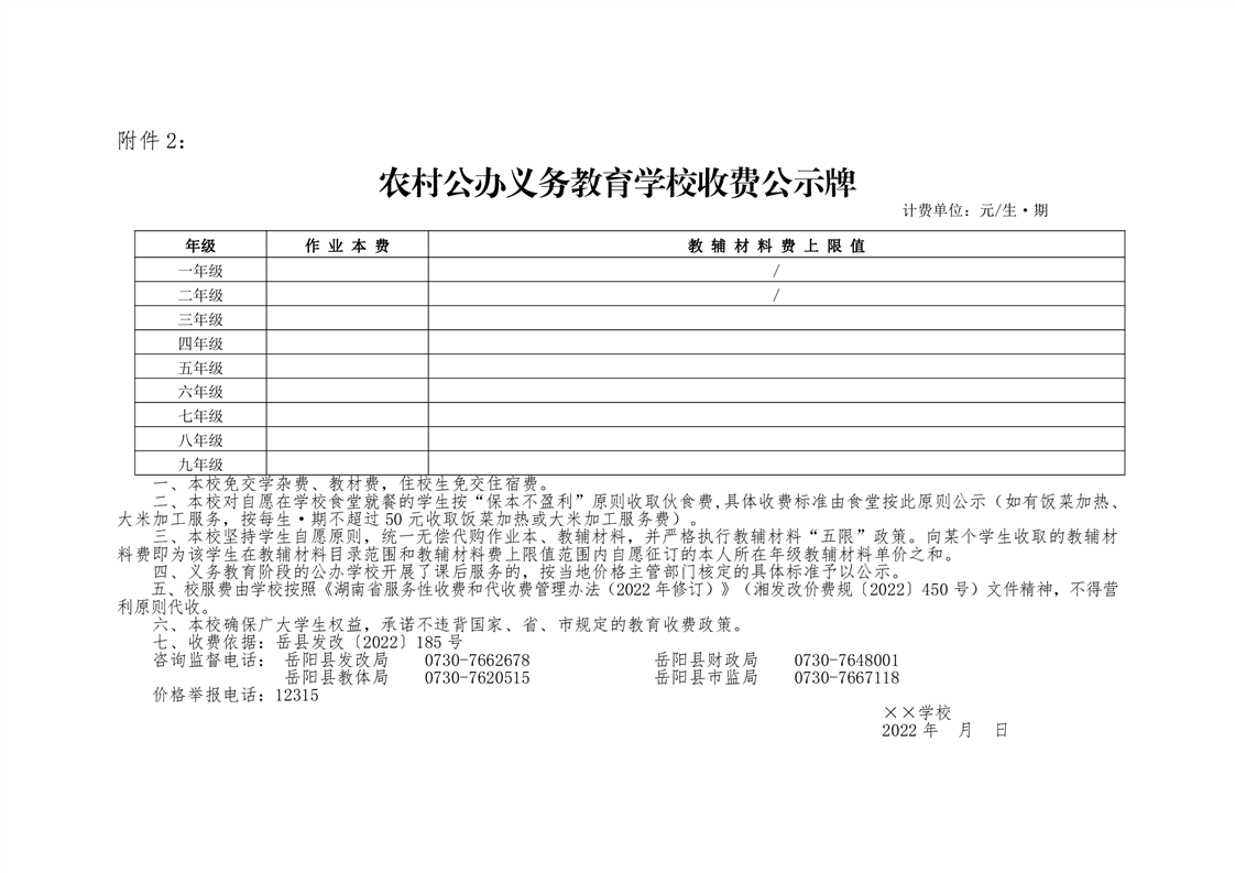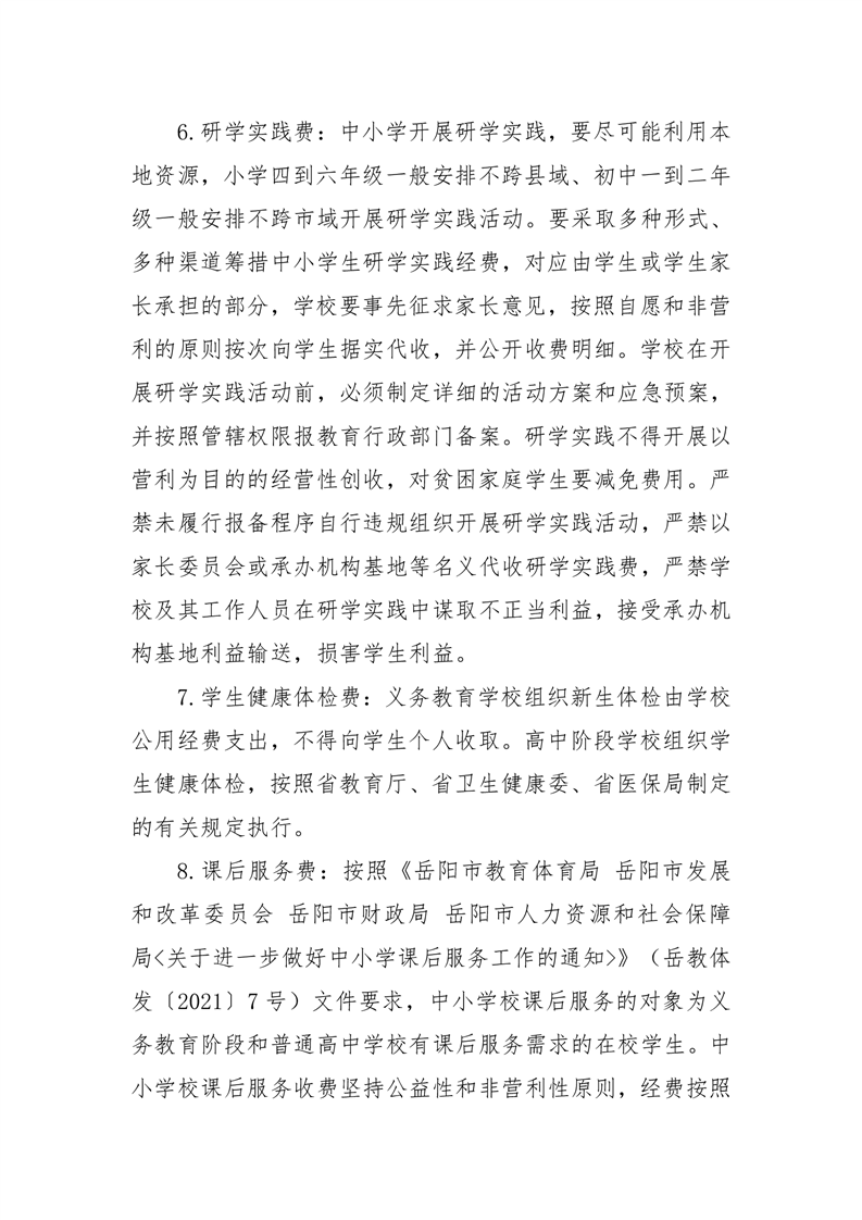 嶽陽縣發展和改革局 嶽陽縣財政局 嶽陽縣教育體育局 嶽陽縣市場監督管理局《關於2022年秋季中小學教育收費有關事項的通知》