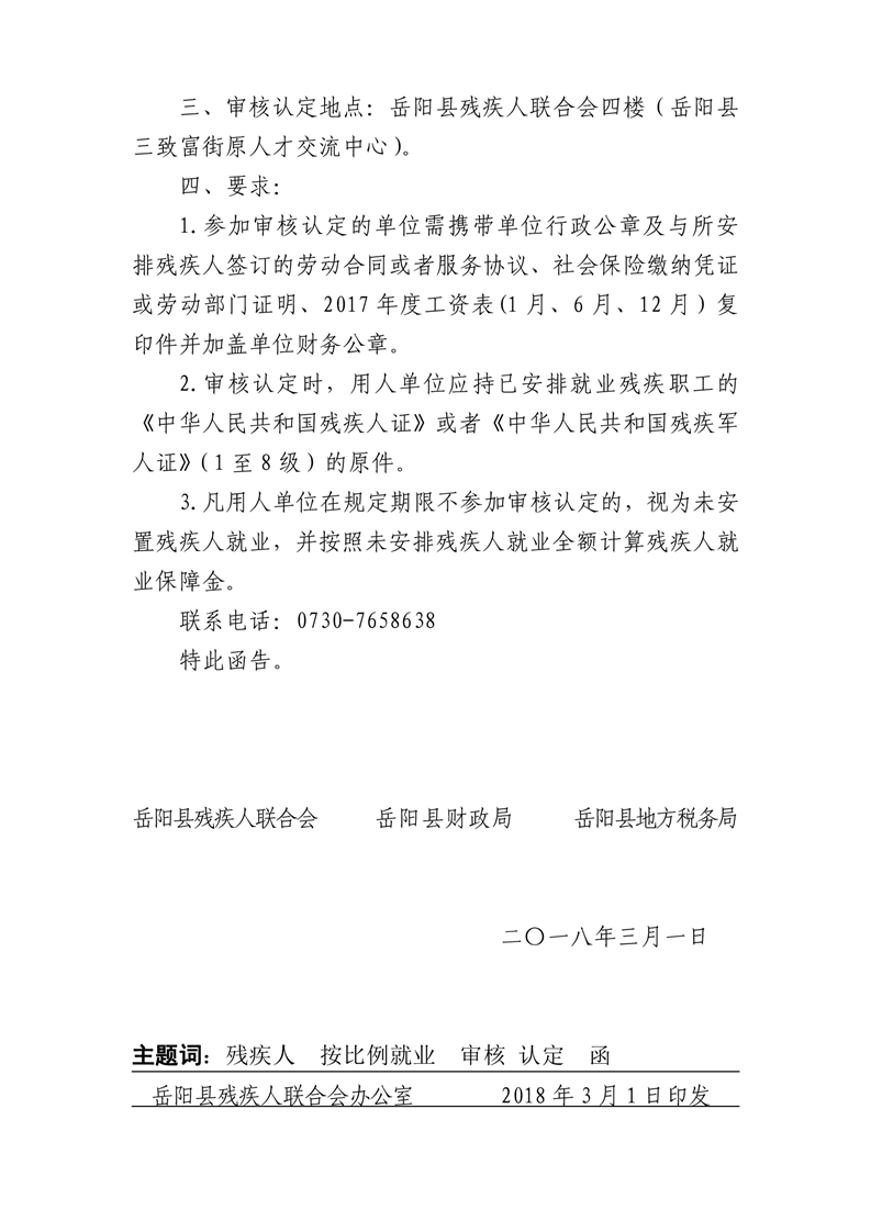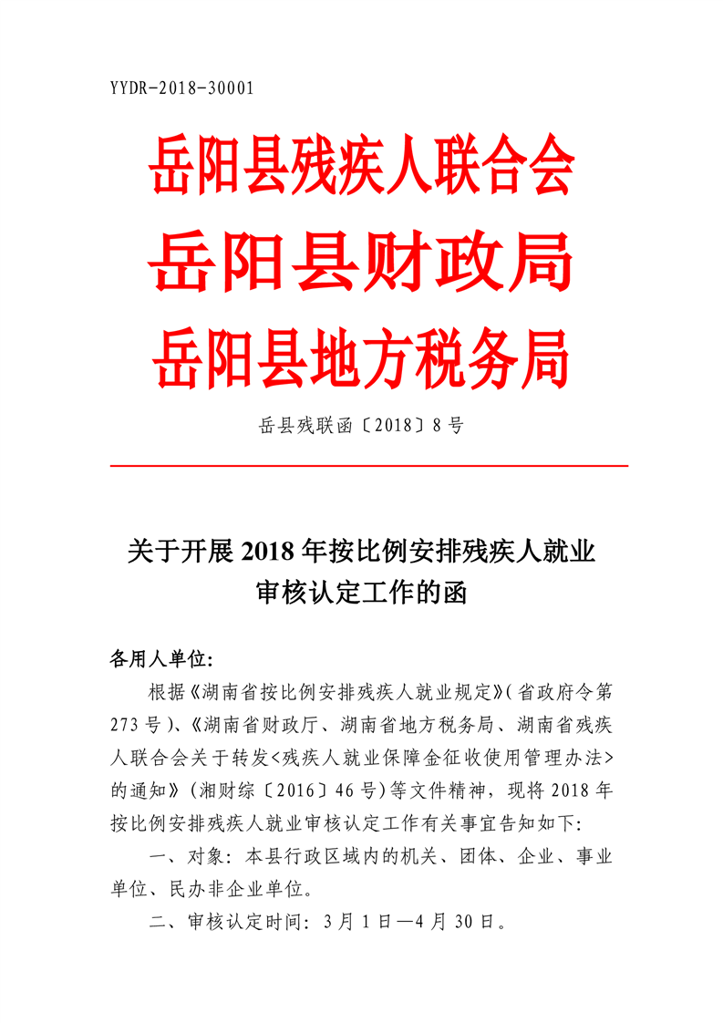 關於開展2018年按比例安排殘疾人就業審核認定工作的函