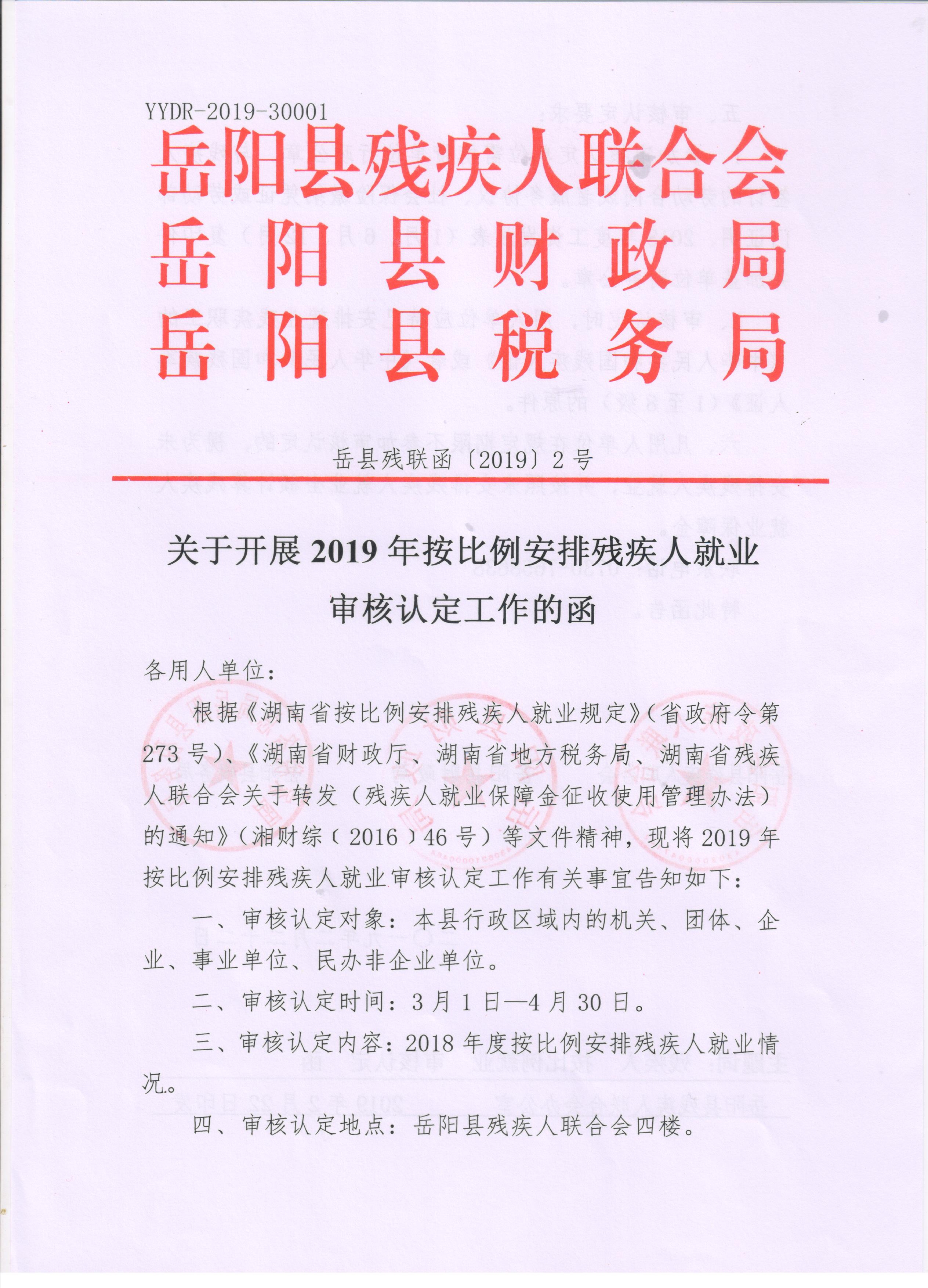 文號:嶽縣殘聯函[2019]2號