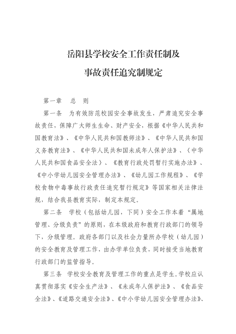 嶽陽縣教育體育局關於印發《嶽陽縣學習安全工作責任製及事故責任追究製規定》的通知