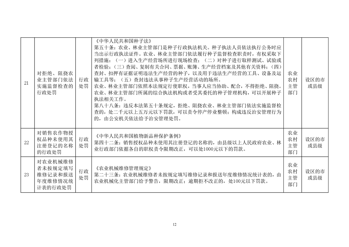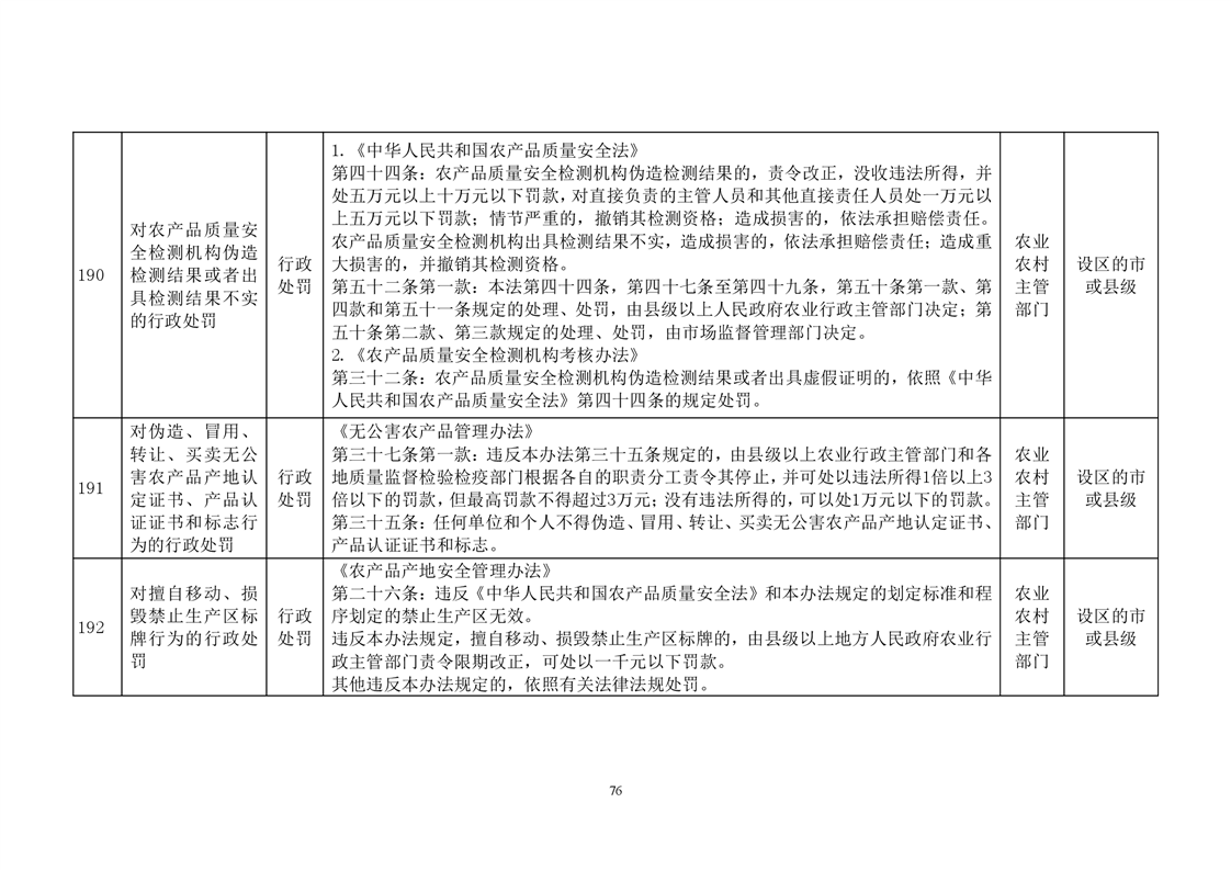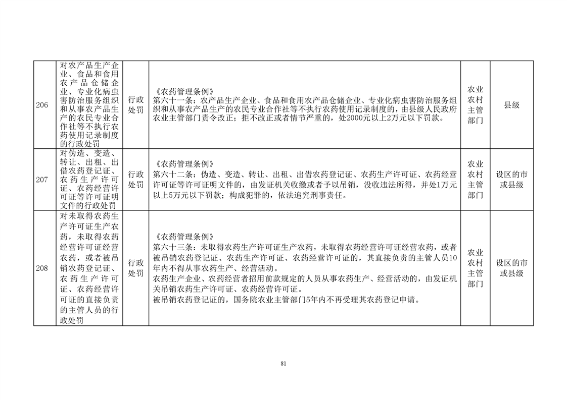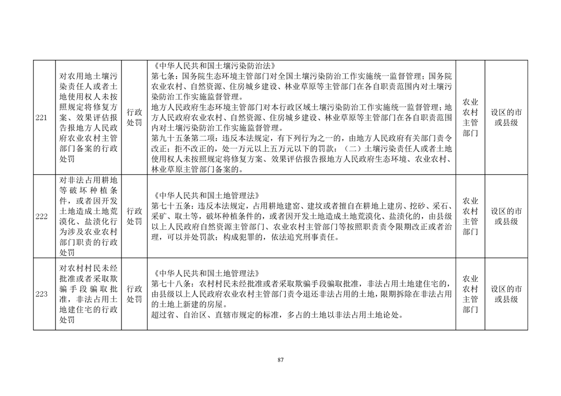 嶽陽縣農業農村局:農業綜合行政執法事項目錄
