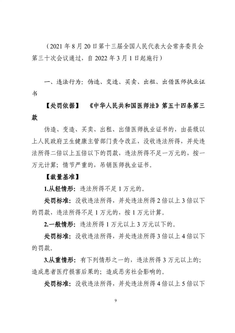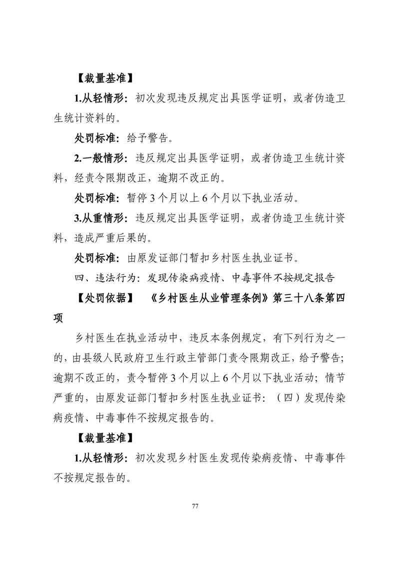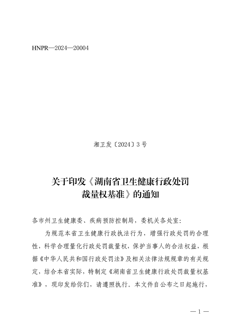 關於印發《湖南省衛生健康行政處罰裁量權基準》的通知