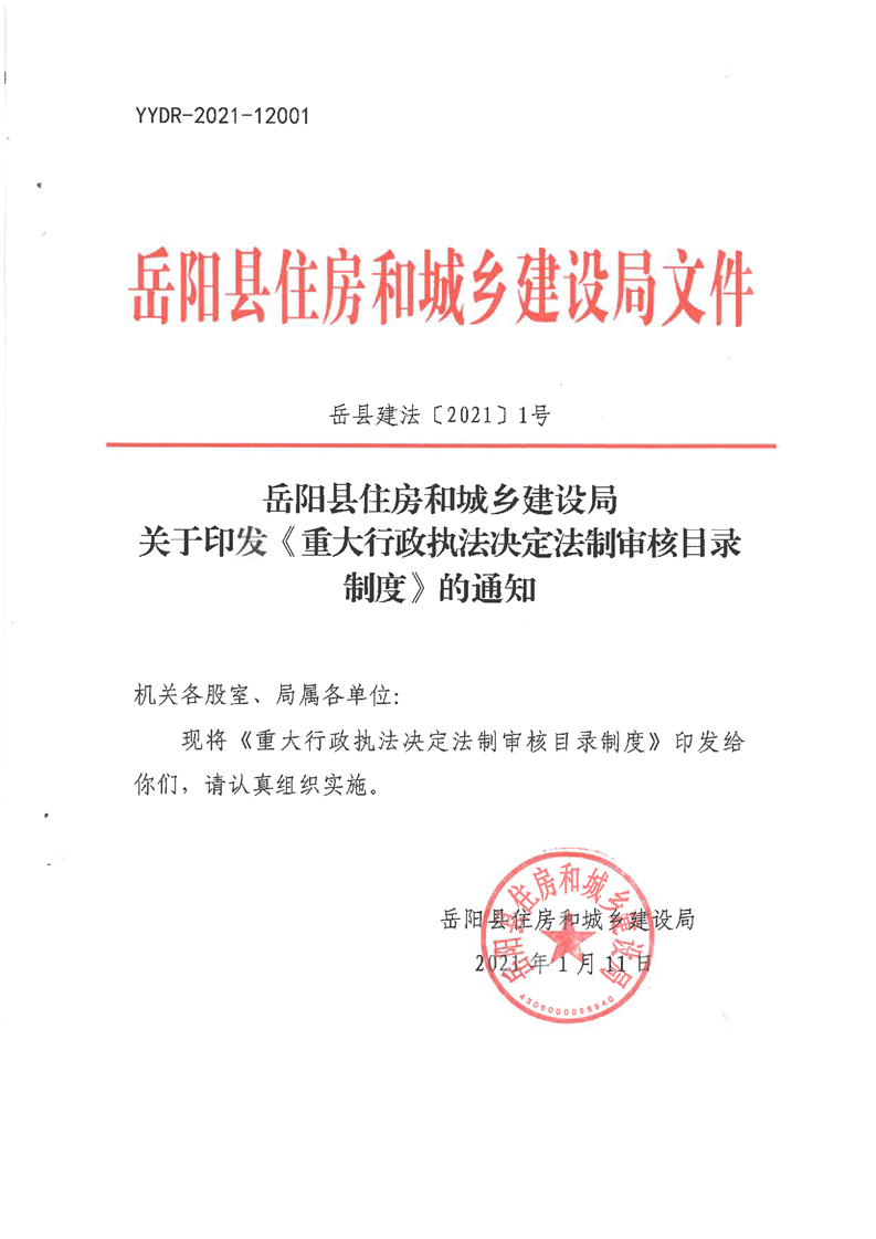 嶽陽縣住房和城鄉建設局關於印發《重大行政執法決定法製審核目錄製度》的通知