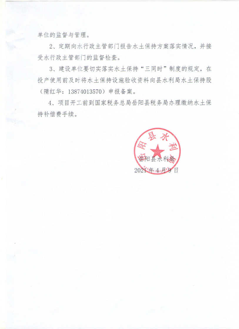 嶽陽縣水利局關於同意《慶新牲豬養殖場建設項目水土保持方案報告表》的批複