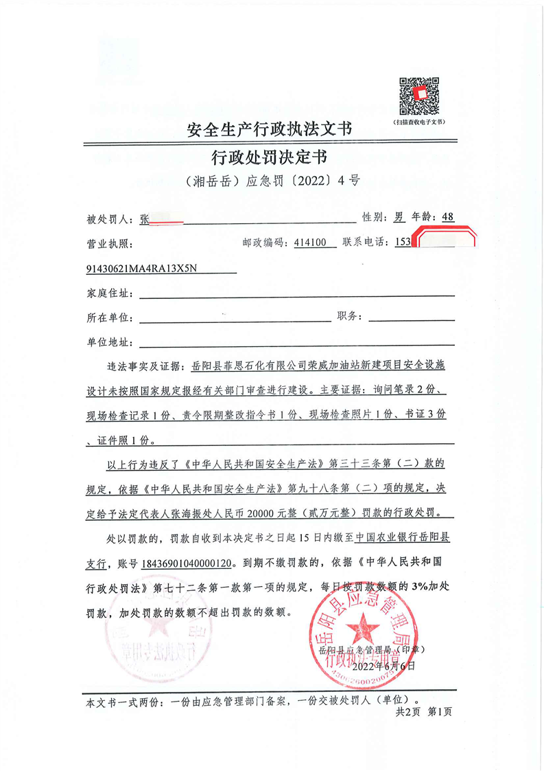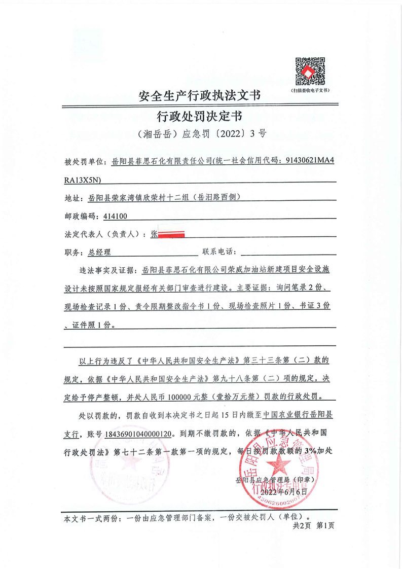 安全生產行政處罰決定公示(6月)