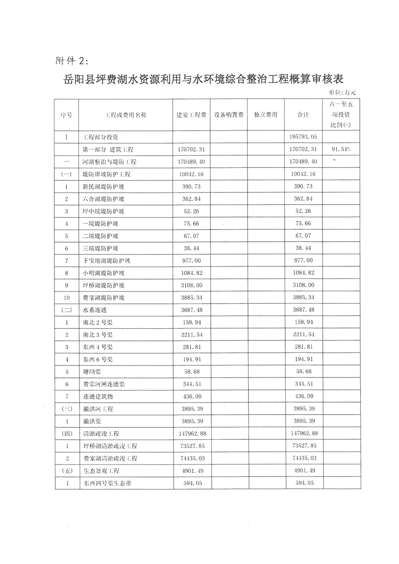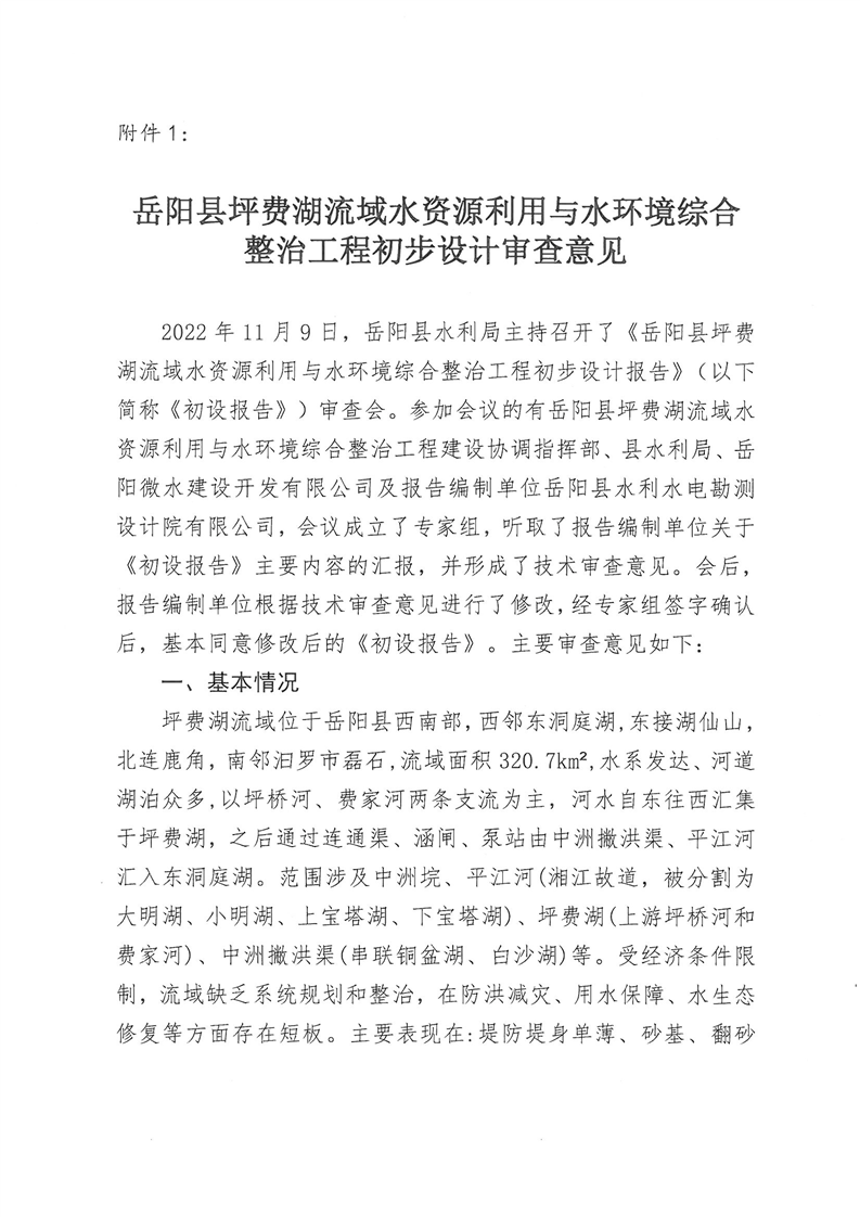 嶽陽縣水利局關於嶽陽縣坪費湖水資源利用與水環境綜合整治工程初步設計的批複