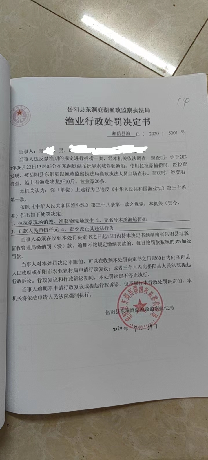 青某處罰決定書
