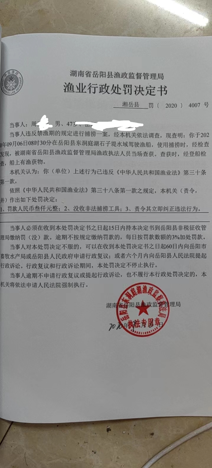 周某某處罰決定書