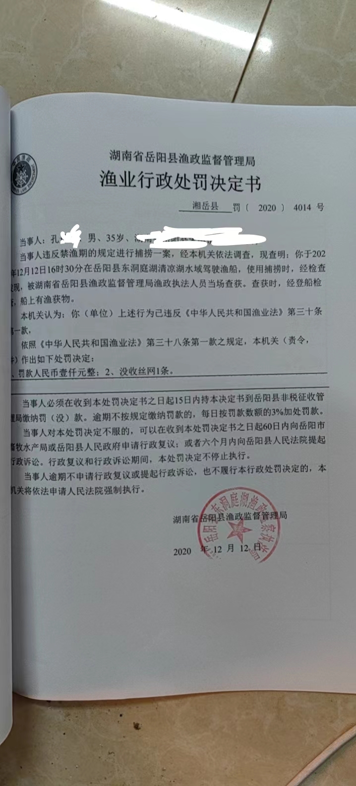 孔某處罰決定書