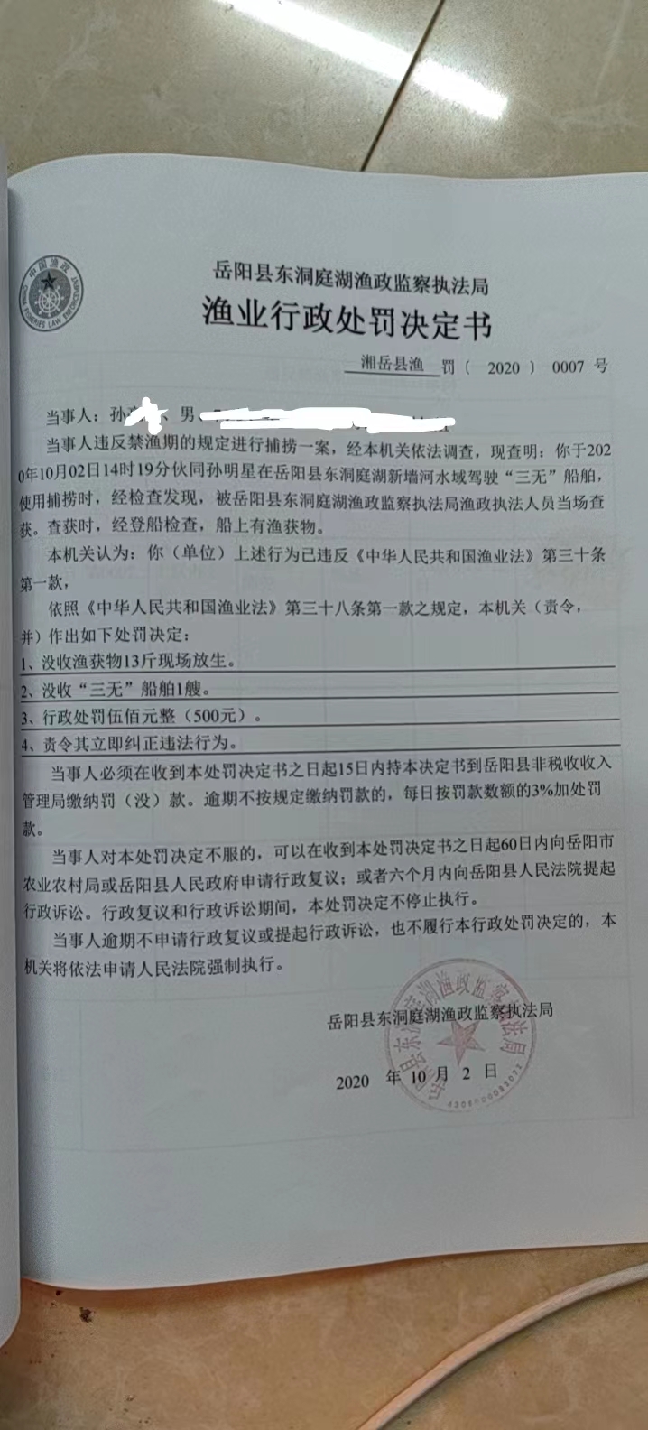 孫某星處罰決定書