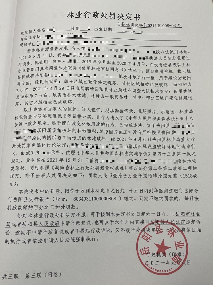 嶽陽縣林業局行政處罰決定書12