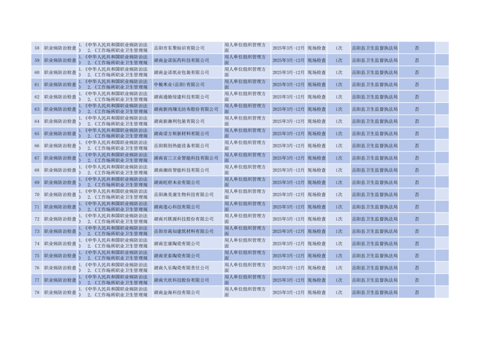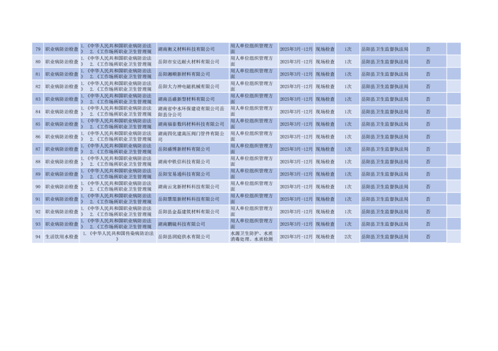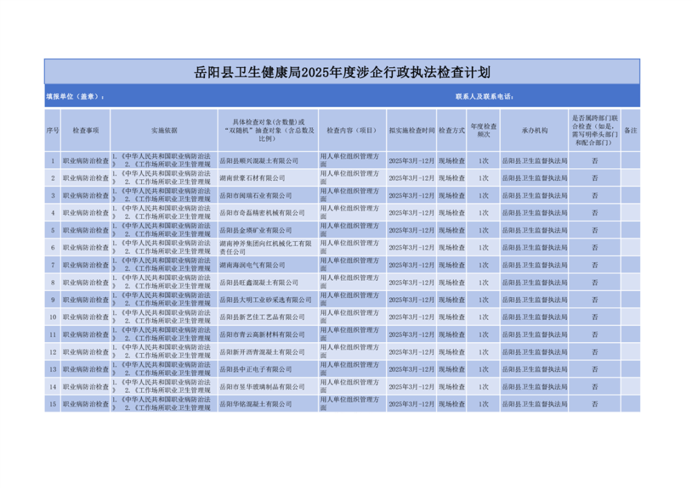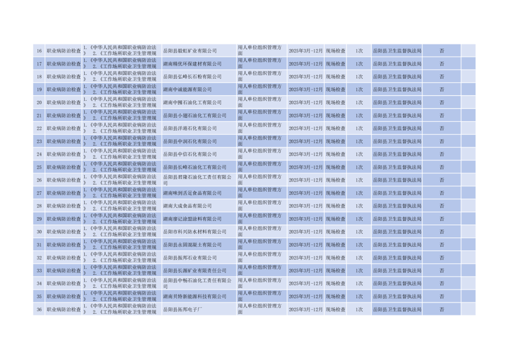 嶽陽縣衛生健康局2025年度涉企行政執法檢查計劃