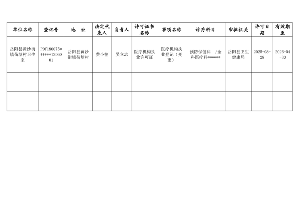 嶽陽縣衛生健康局2025年8月醫療機構執業許可公示