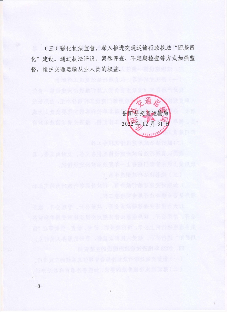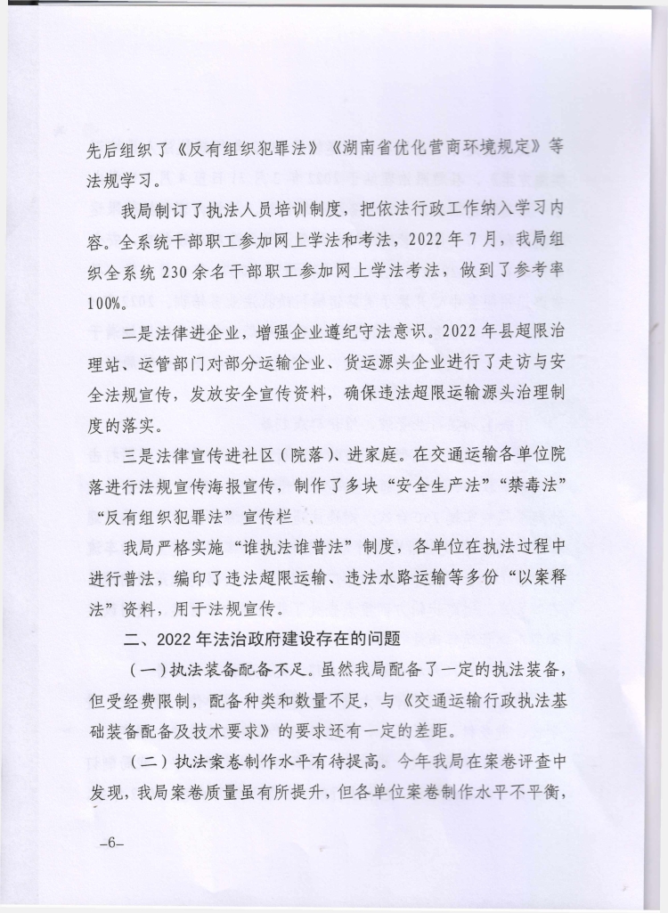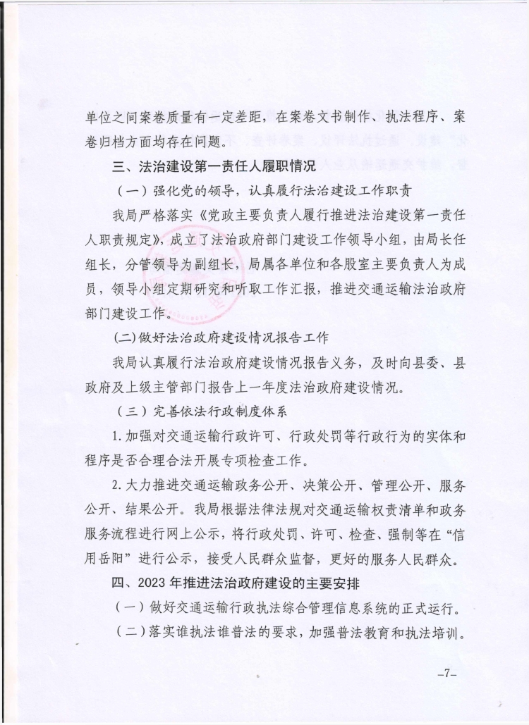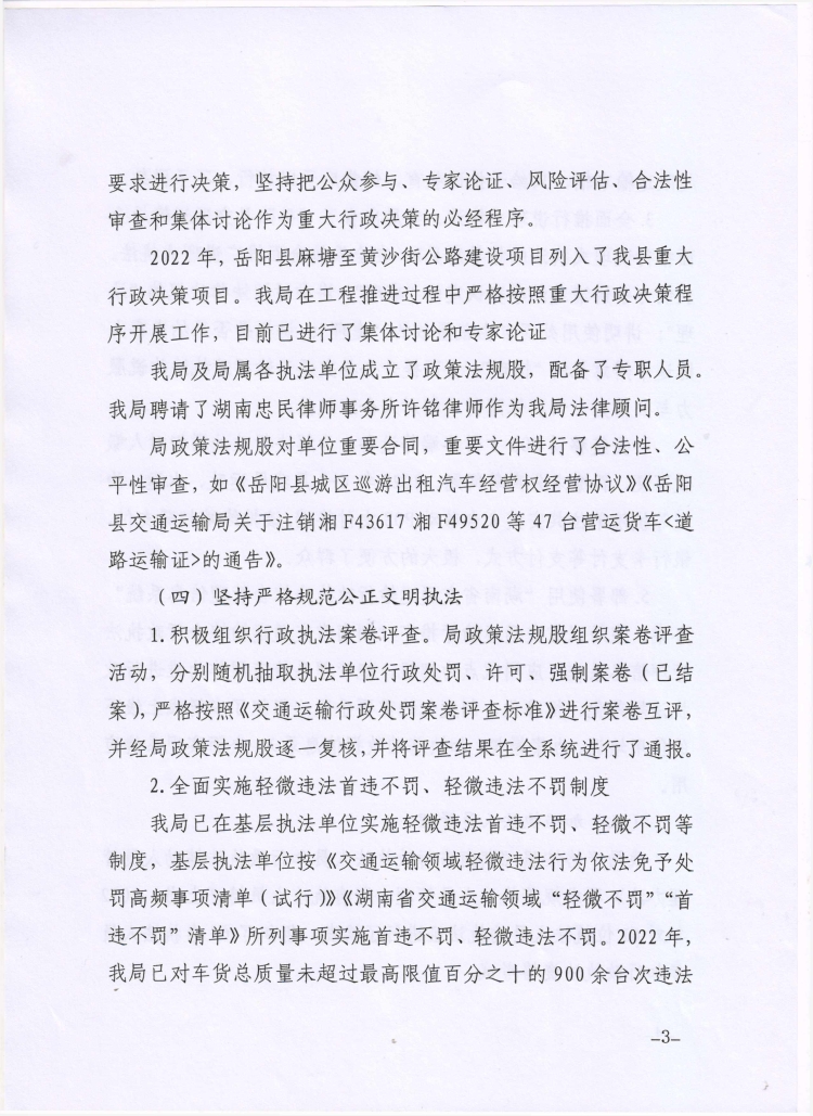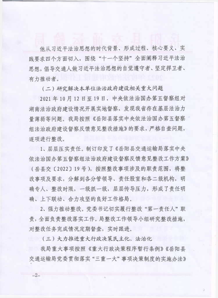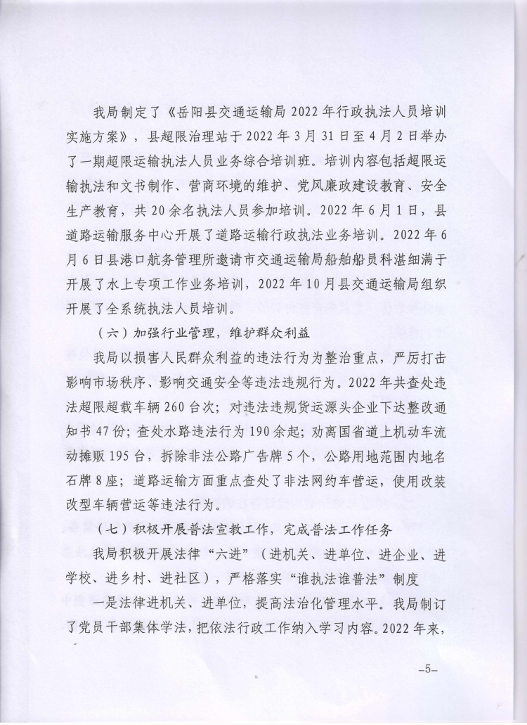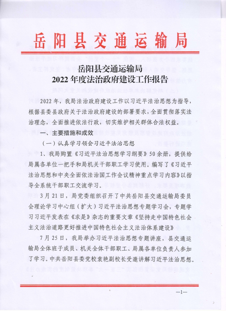 嶽陽縣交通運輸局2022年度法治政府建設工作報告