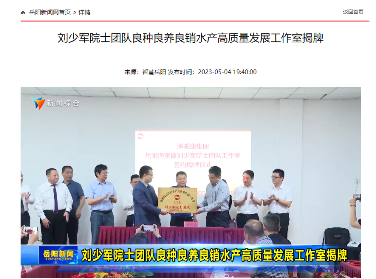 嶽陽漁美康生物科技有限公司是一家以“健康高效水產業,放心美味中國魚”為使命的高科技企業。此次在嶽陽漁美康建立“劉少軍院士團隊良種良養良銷水產高質量發展工作室”,標誌著公司在推進產學研合作方麵邁出了新步伐,在推動科技創新方麵取得了新成效。